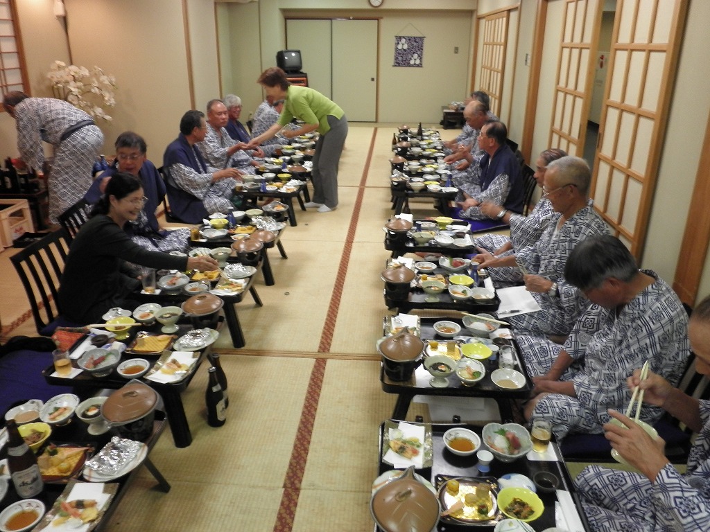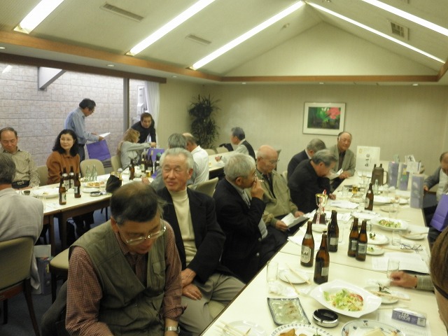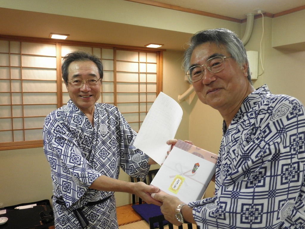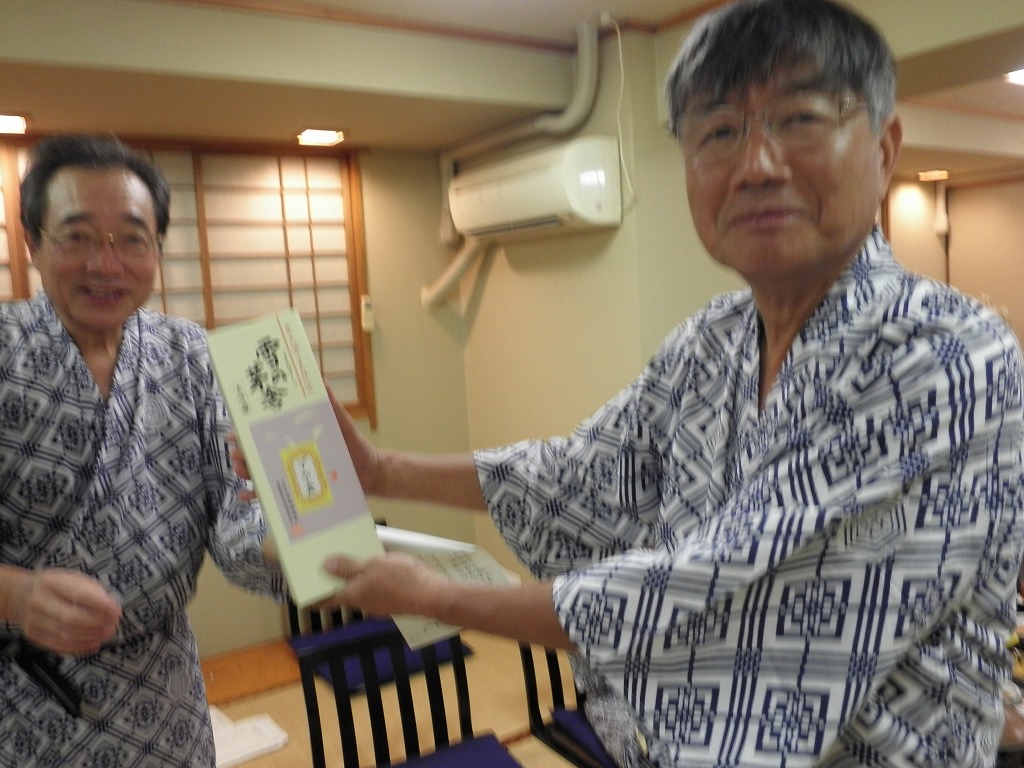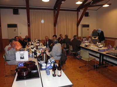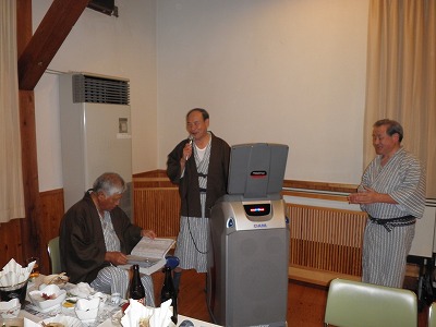 懇親会では、例によって大変な量のアルコールを摂取しつつ、嵯峨良平さんの尺八の伴奏により、全員で秋田民謡を歌って絆を深めました。