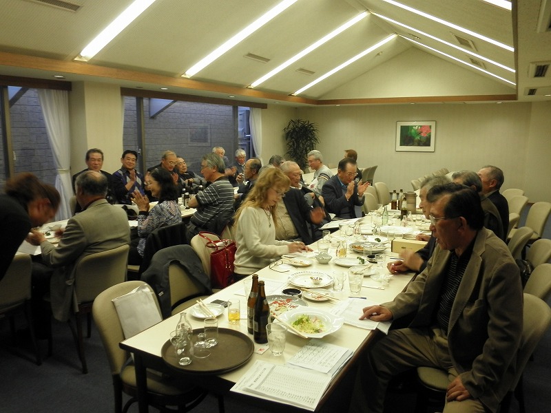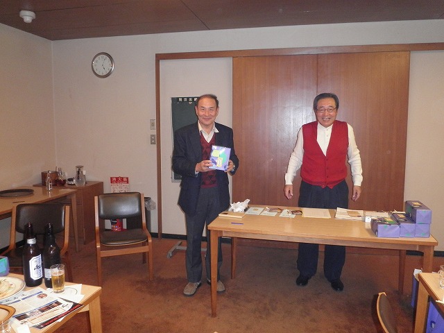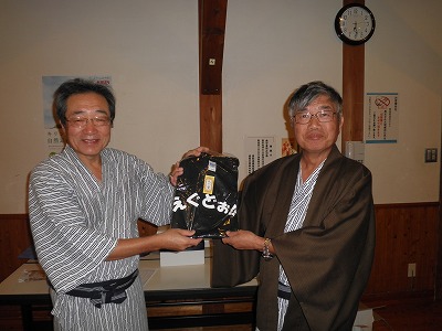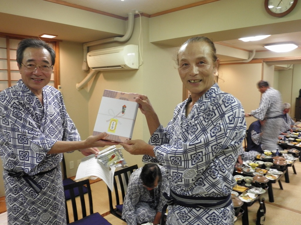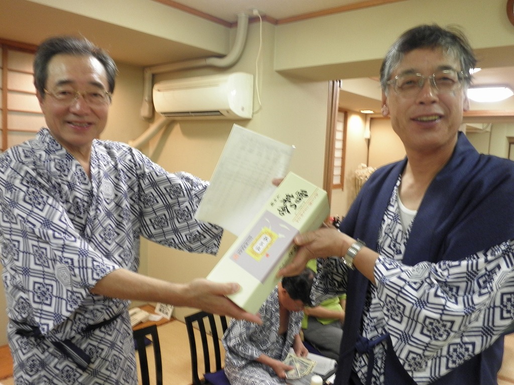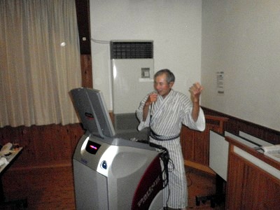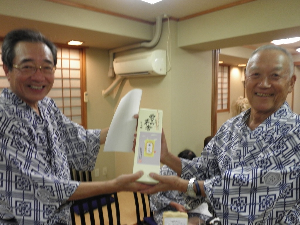 懇親会では、例によって大変な量のアルコールを摂取しつつ、嵯峨良平さんの尺八の伴奏により、全員で秋田民謡を歌って絆を深めました。