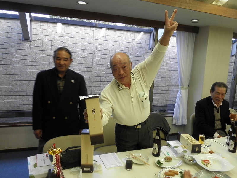 プレー後は、くらぶち相馬川温泉・ふれあい館において、表彰式を行い、お酒をたっぷり飲み、カラオケなどで、大いに盛り上がり、加藤さんは大はしゃぎでした。秋工の絆が益々強くなったような気がします。