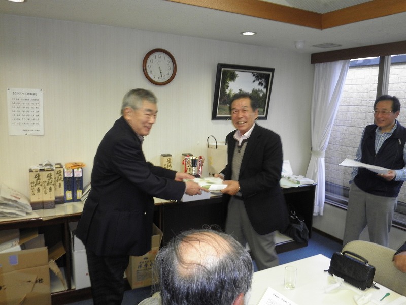 前回優勝の斎藤さんからお祝い