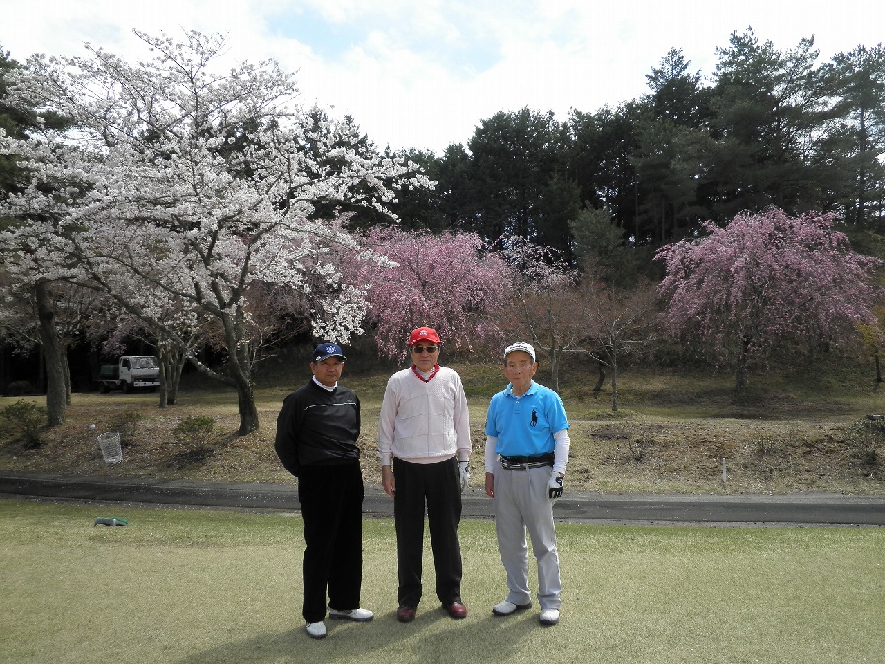 当日は天候に恵まれ最高のゴルフ日和でした。山桜が満開で桜花の下でゴルフを楽しみました。