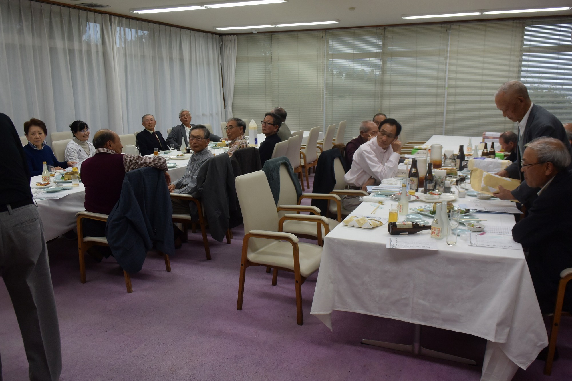 その後、例によって大いに飲み、且つ大いに語り合って同窓の絆を深めあいました。また、退任された鎌田満雄ゴルフ同好会会長の後任として、宮川良一さん(34M)を選出し、ご挨拶をいただきました。