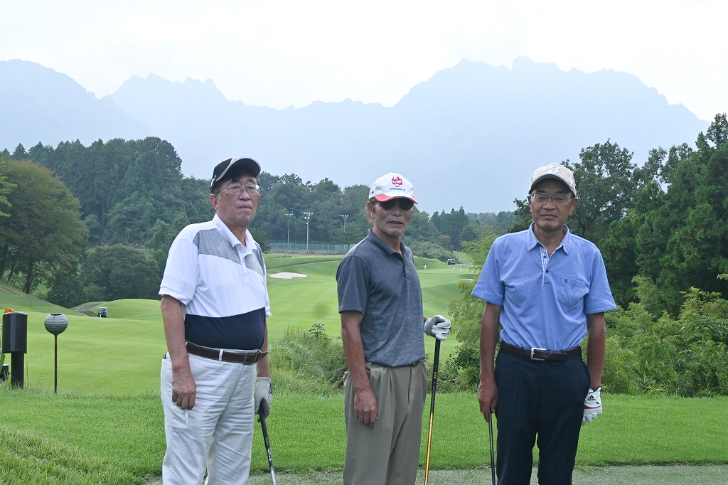 9月(17~18日)三平俊悦の企画により、3組で妙義カントリークラブにおいて、開催しました。プレー後隣接してる妙義グリーンホテルに宿泊し温泉に浸り疲れを癒しました。翌日は俱楽部我山において、プレーしました。藤田昌博氏が連続優勝しました。妙義カントリークラブは日本三大奇景地のひとつ妙義山の風光明媚なコースでした。俱楽部我山は群馬県のゴルフ場で雄一の全キャデー付きで10分間隔のスタートで余裕以ってプレーができました。従業員は教育が徹底されて親切で好感をもちました。クラブハウスは山荘をイメージした。気持ちを落ち着かせるクラブハウスでした。天候に恵まれ爽やかにプレーができ、パットグリーには赤とんぼが飛び回り秋を感じました。再度紅葉の時に再度プレーしたいなと思いました。