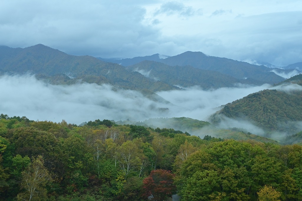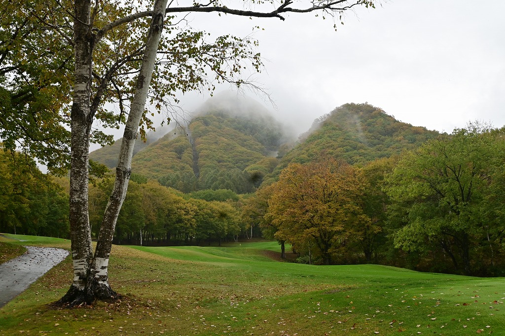 初日は多少雨に降られましたが、コースにカート乗り入れができ紅葉見ながら快適にゴルフを楽しみました。早朝に雲海が墨絵のように幻想的でした。