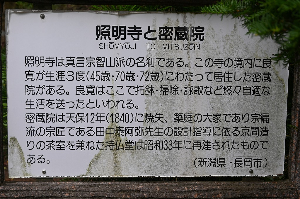 1047年に創立された照明寺境内には良寛が住んだ密蔵院がありました。