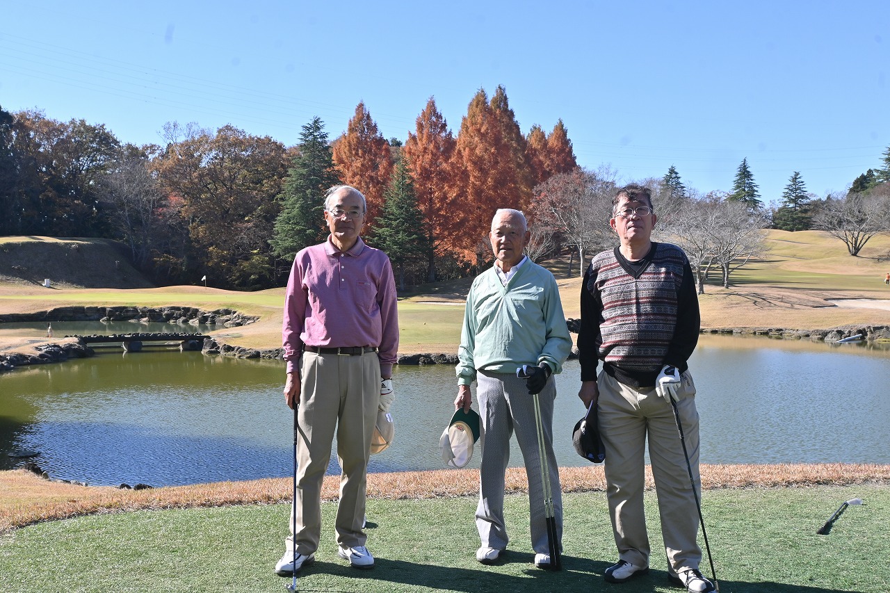 帰りの車の運転に注意しようと申し合わせ散会しました。参加者は橋本正明(32E)生駒茂(33C)宮川良一(34M)杉山孝治(35A)小野鐡雄(38C)三浦芳暉(39K)宇佐美荘三(39A)三平俊悦(39A)佐藤鉄三郎(41A)嵯峨勝(43M)舘岡正一(44A)。25日の優勝は館岡・2位佐藤、26日の優勝は橋本、2位三平でした。
