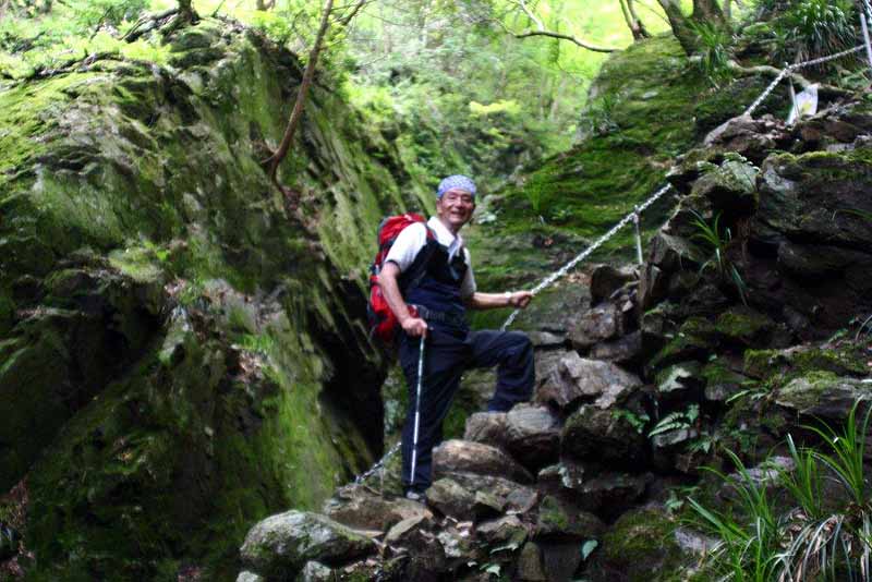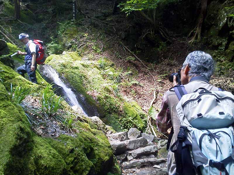 8時30分西武鉄道飯能駅に集合、佐藤さんの車で河又駐車場に9:10分に到着した。有間ダムの先の登山口を目指し舗装された坂道を20分進み白谷沢登山口から沢沿いに進む、苔むす岩と清流が目を和ませる、鎖場を過ぎたらほぼ中間点であるがここから先は急登で階段と木の根の悪路で体力を奪われる。