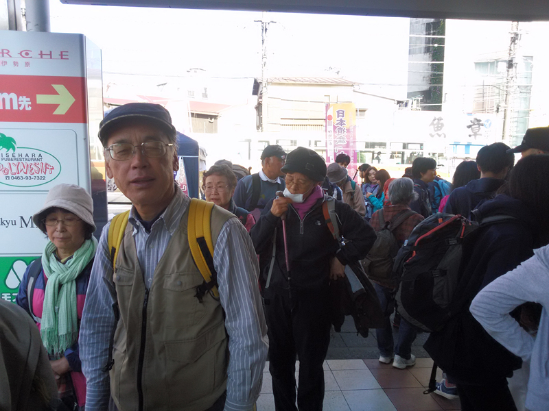 晴天に恵まれ絶好の行楽日和となり、集合場所の小田急小田原線伊勢崎駅の大山ケーブル駅行のバス待ちの列は大行列で、次々に増便するバスは全て直行便でした。
