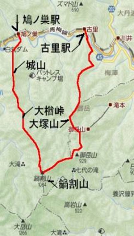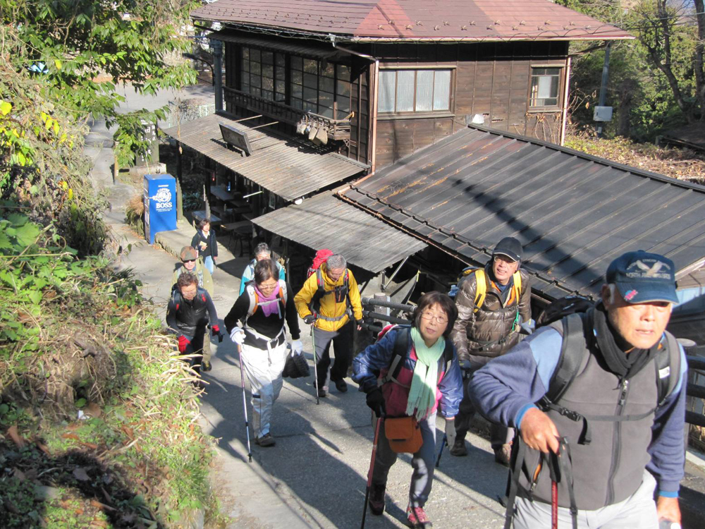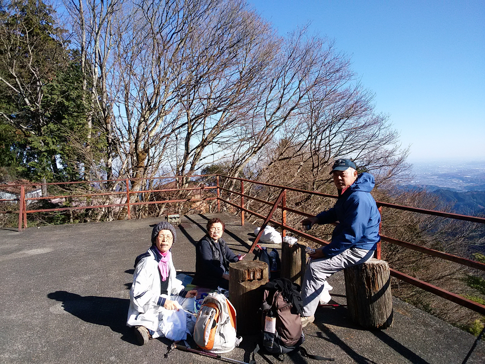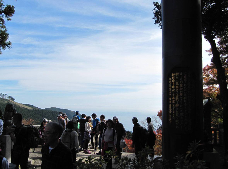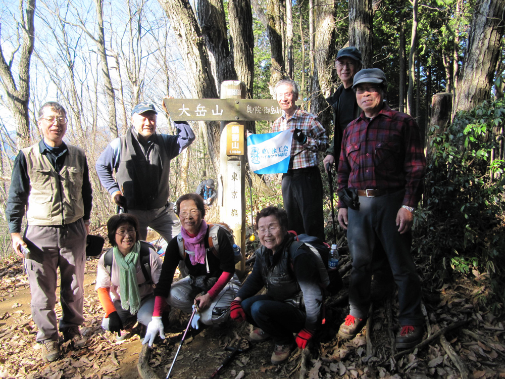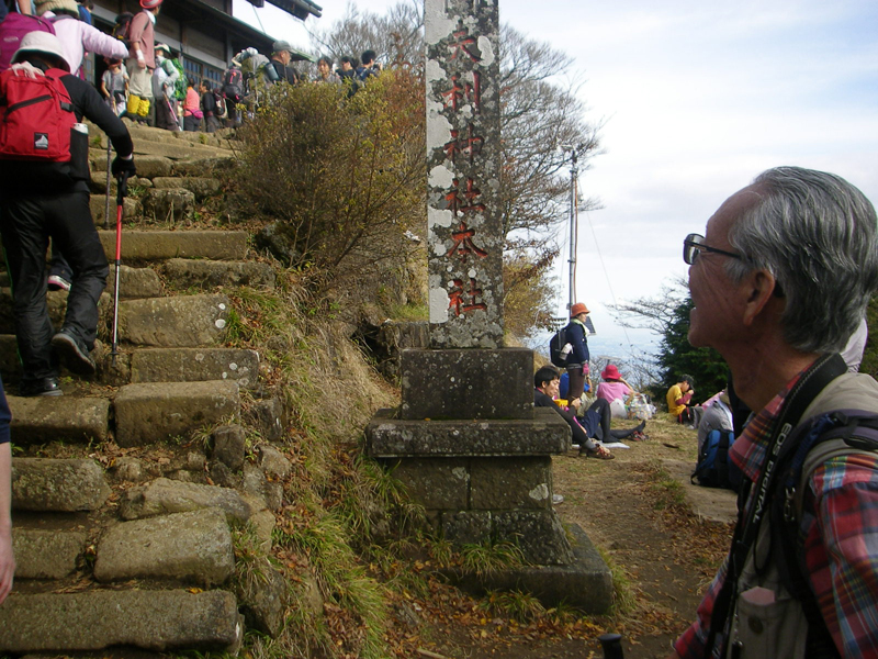 大岳の商店街を進み武蔵御嶽神社の登山口から10:00に登山開始、小さな祠のような奥の院をへて11:30目的の鍋割山到着、12:30大岳神社大鳥居の前にある展望台にて昼食休憩、高尾山系・丹沢山系のはるか西側の富士山の眺望は雄大であった。