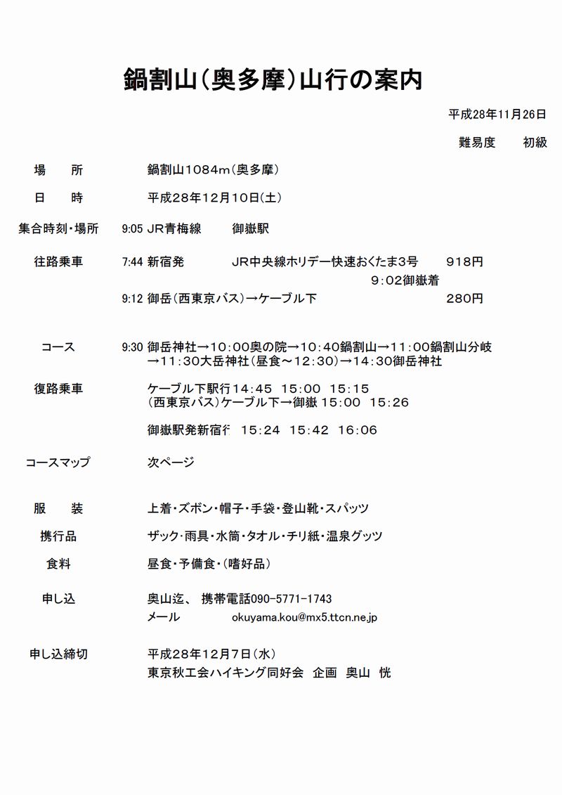 平成28年12月10日奥多摩の鍋割山に行ってきました。