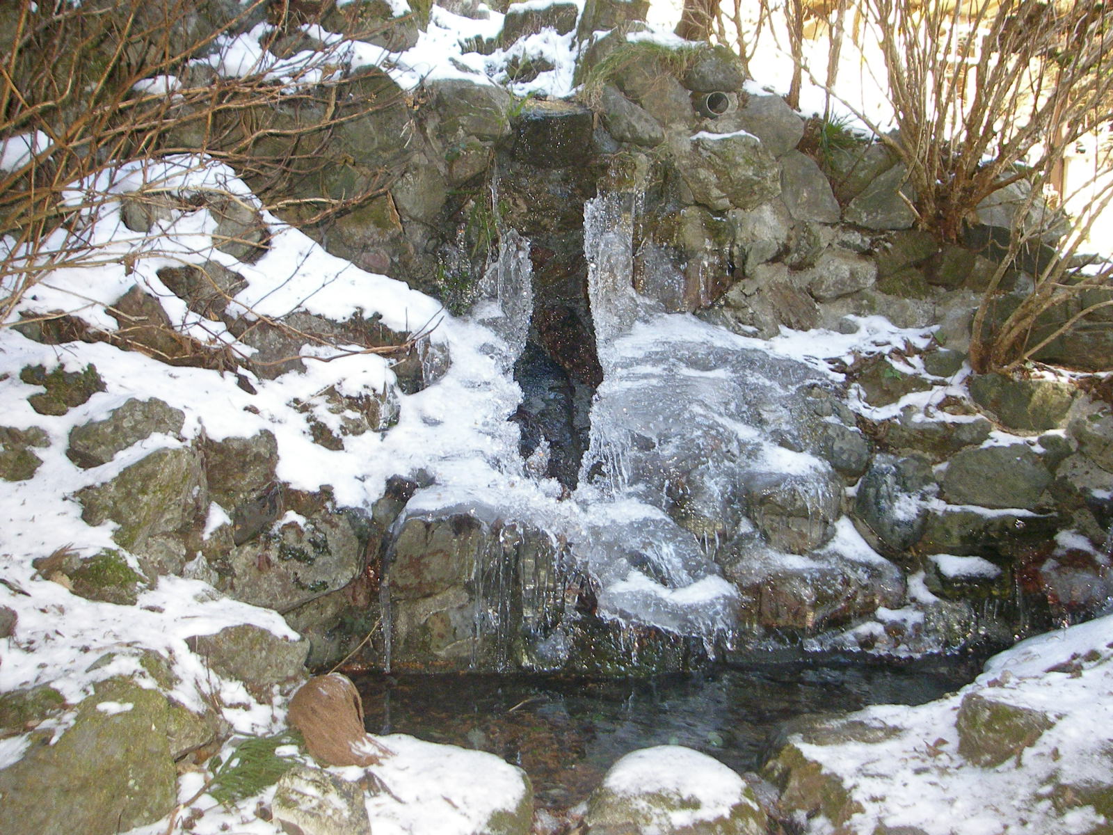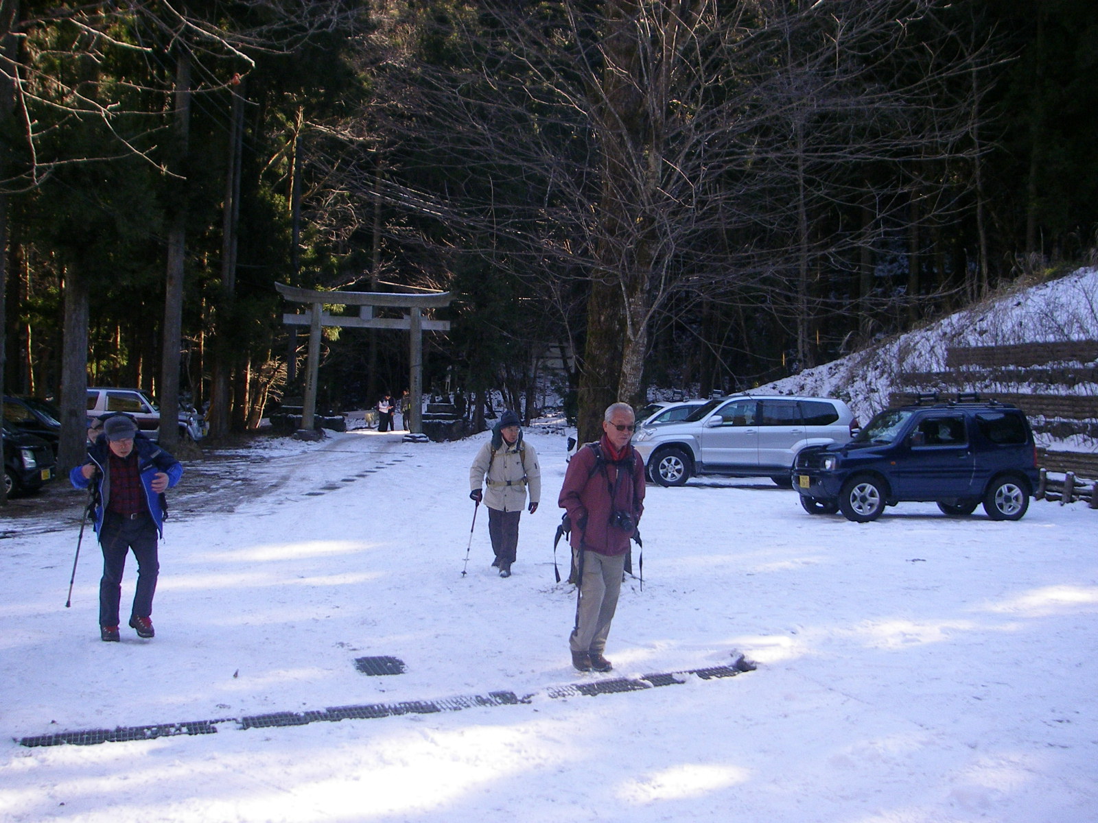 9時15分西武鉄道秩父線横瀬駅を2台の車で出発10分程進むと石灰岩加工の工場があらわれ、そこを過ぎると坂道の雪が凍結していたため途中の空き地に駐車して登山口のある一の鳥居に9時45分到着、コンクリート舗装の道を400m程進むと養魚場があった。