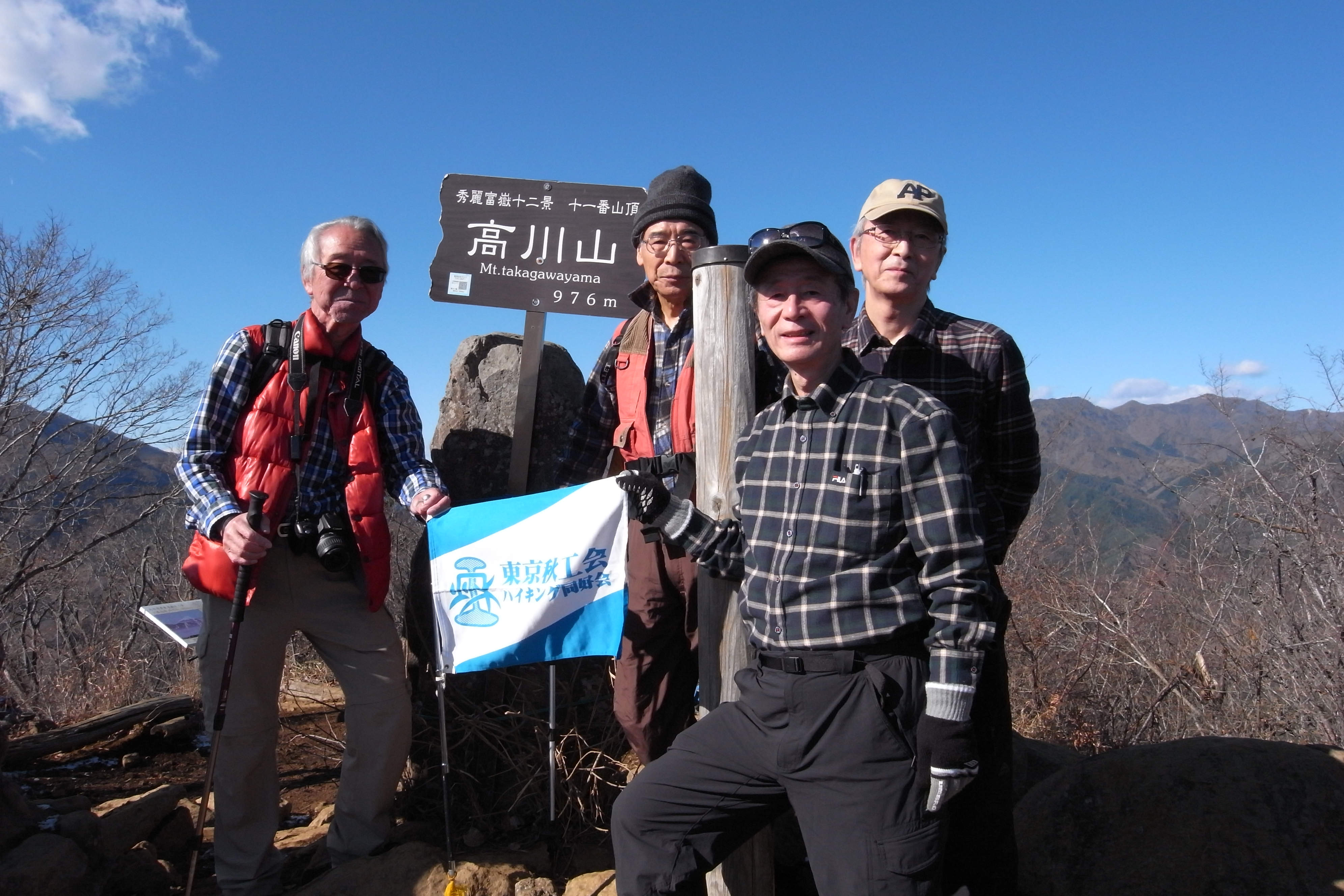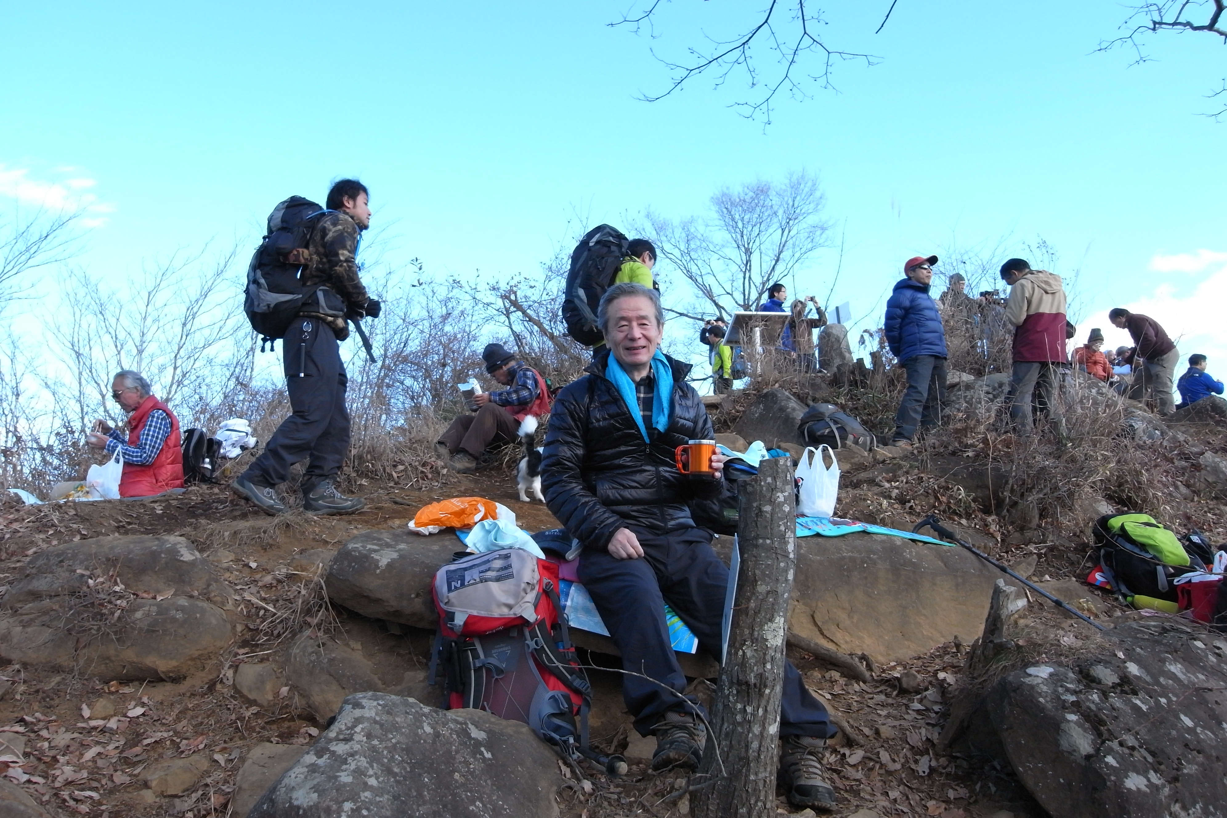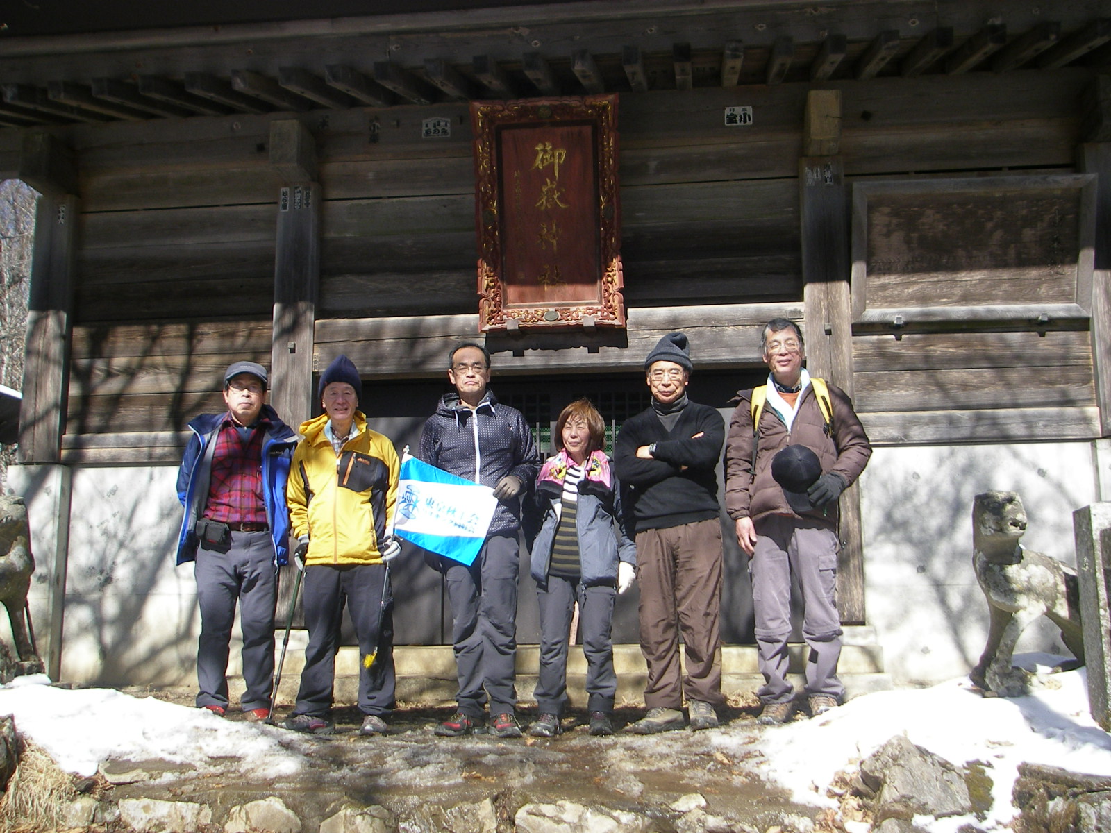 1月7日雲一つない快晴に恵まれ絶好の登山日和で、中央本線猿橋駅に10時集合参加者は、加藤幸夫(S36M)・市川正(S41E)・嵯峨良平(S43E)・赤間政志(S53E)夫妻・奥山恍(S41K)の6人です。