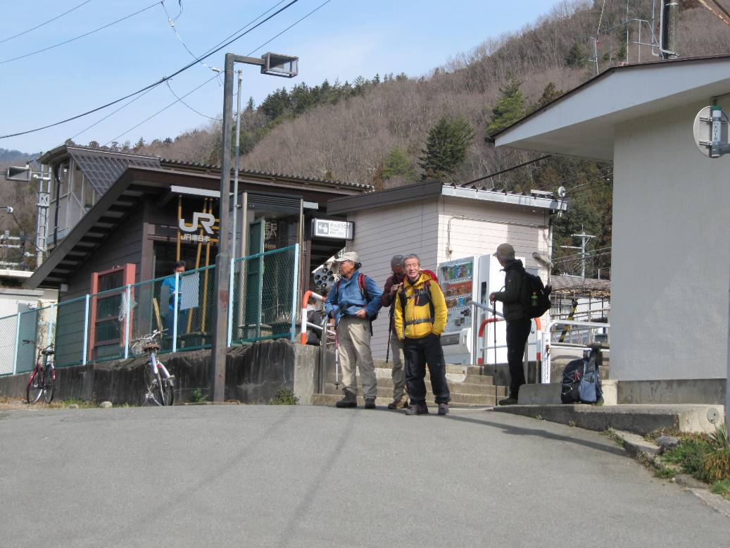 3月12日、中央本線梁川駅に9時45分集合、参加者は、加藤幸夫(S36M)・佐藤勲(S40M)・市川正(S41E)・嵯峨良平(S43E)・三浦勝(S43M)・赤間政志(S53E)夫妻・奥山恍(S41K)の8人です。
