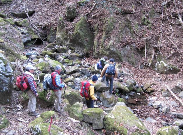 10:45 月屋根沢沿いを登る。