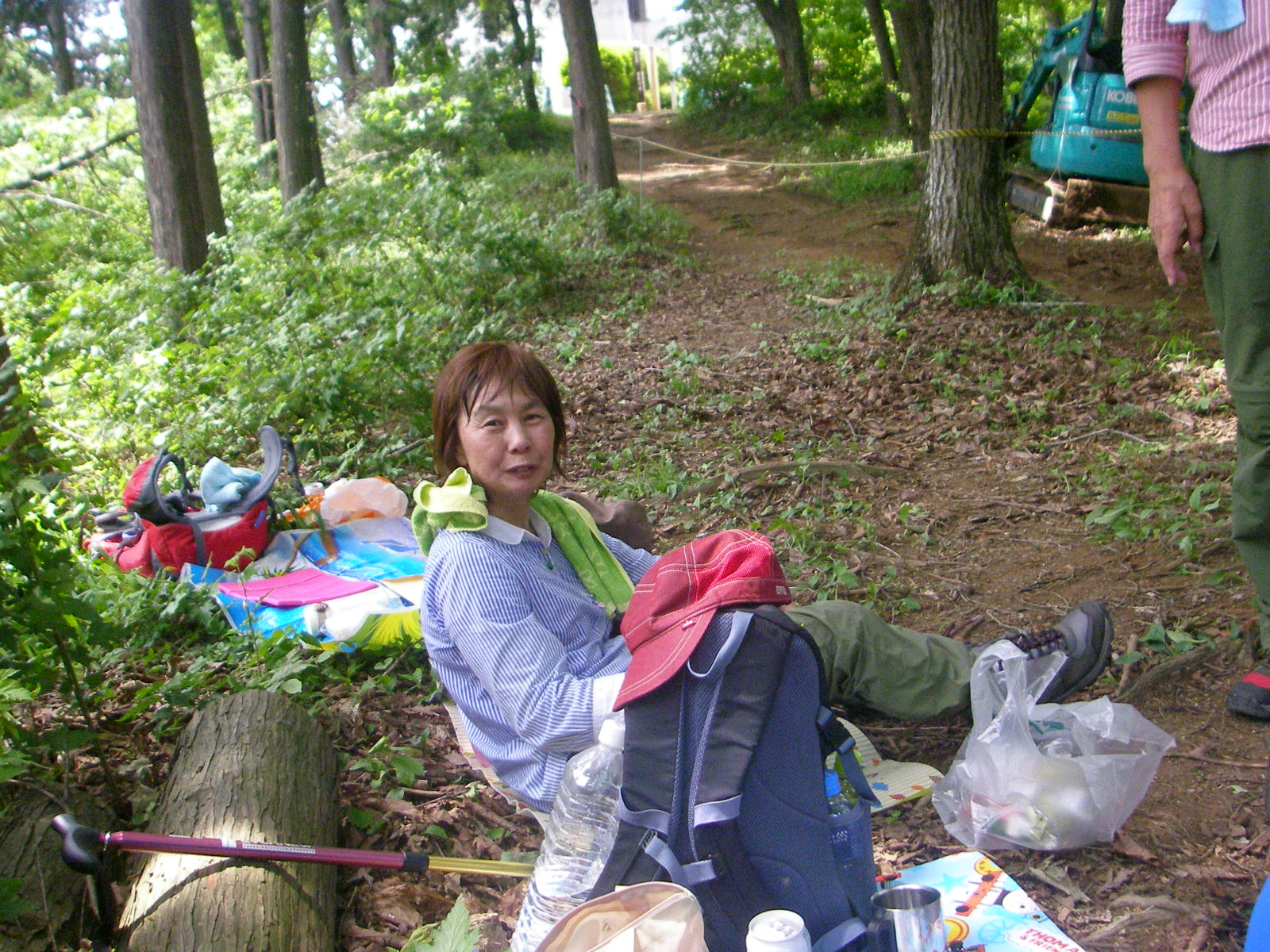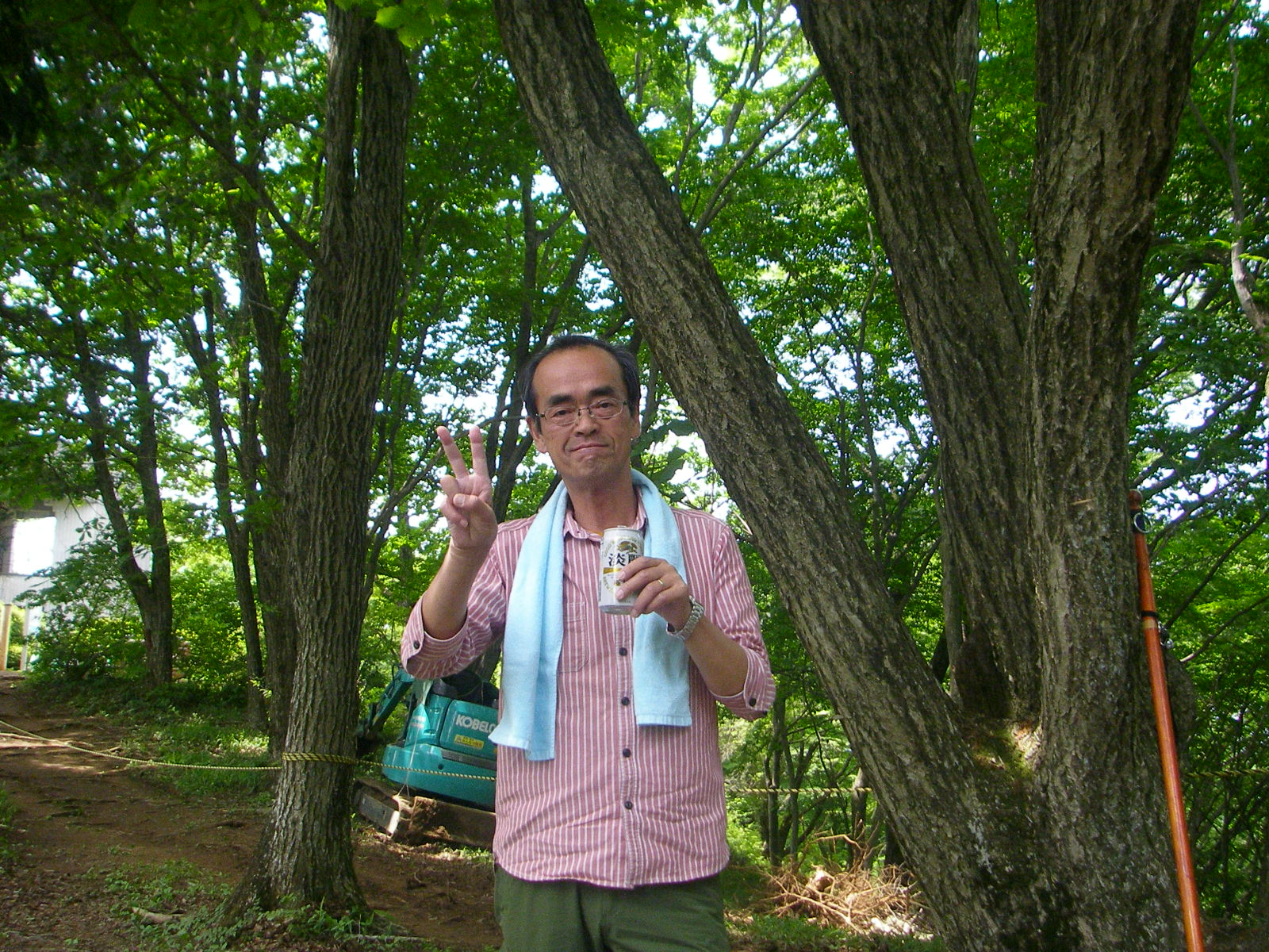 少し木々があるが360度の見晴である。早速証拠写真を撮り昼食休憩先ずは缶ビールで乾いた喉を潤す、12時半下山開始、下山道は来た道と同じでは面白くないので新道をチョイス、これが大失敗、コンクリート舗装された坂道を延々1時間歩くはめとなった。