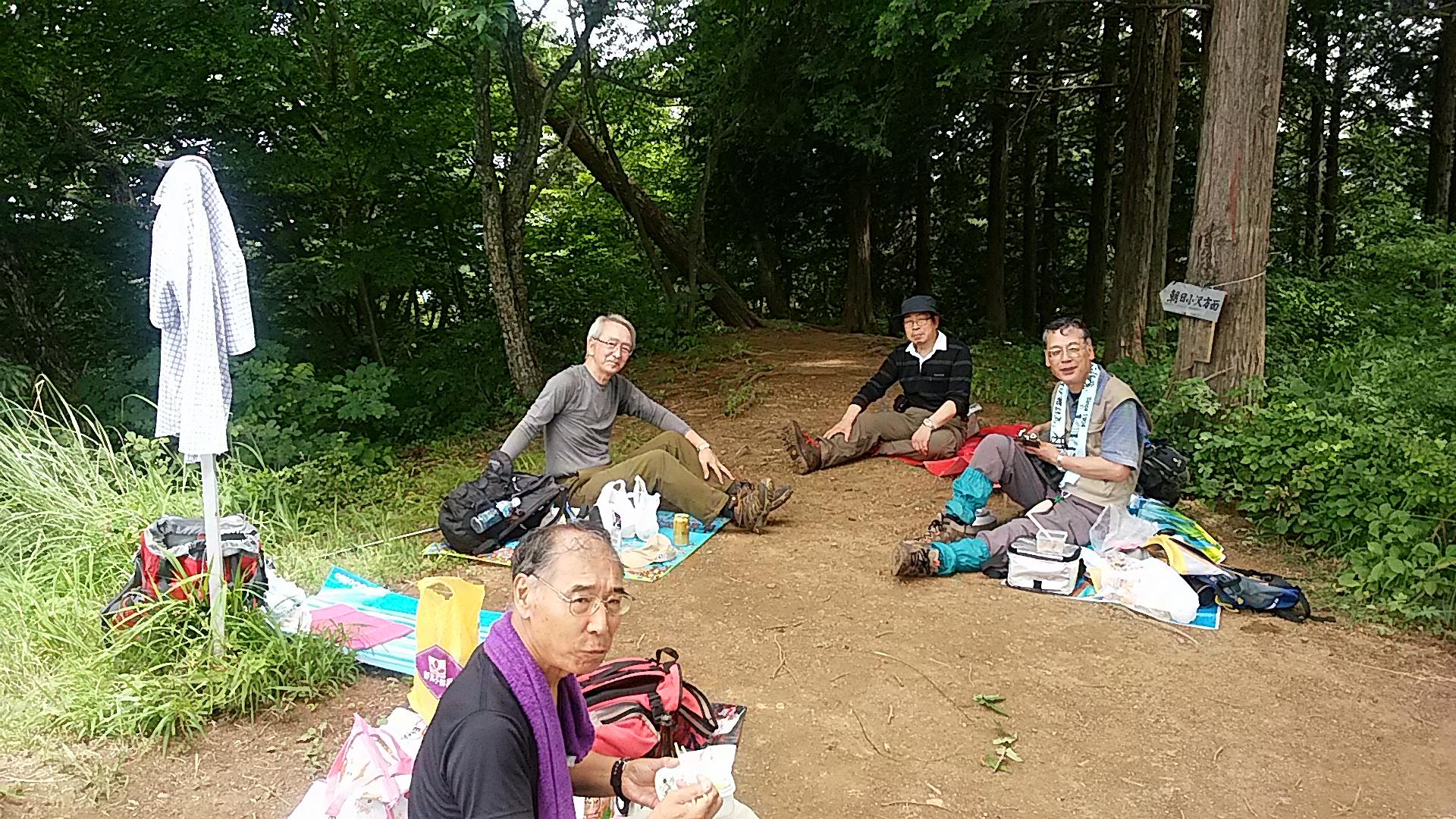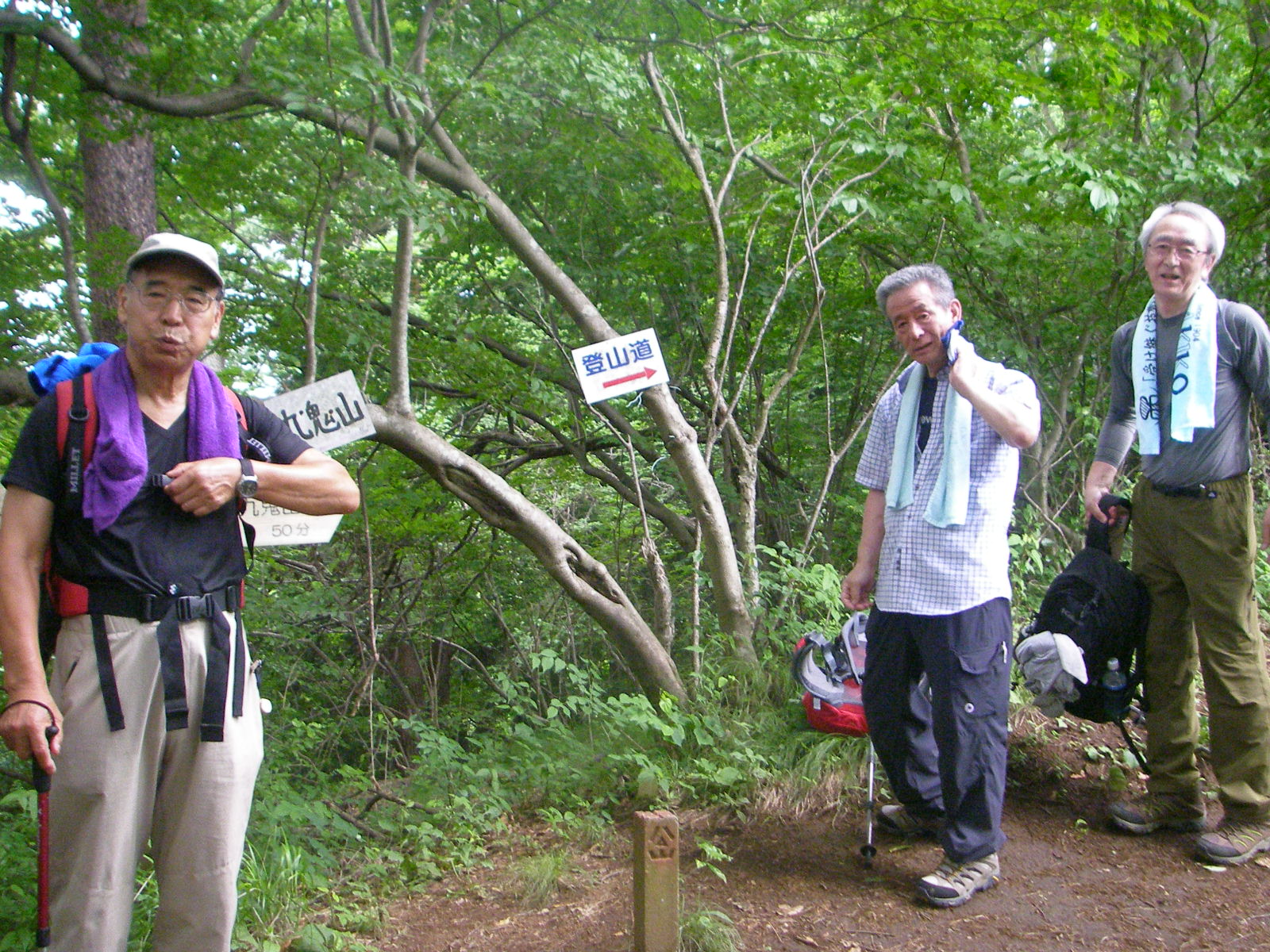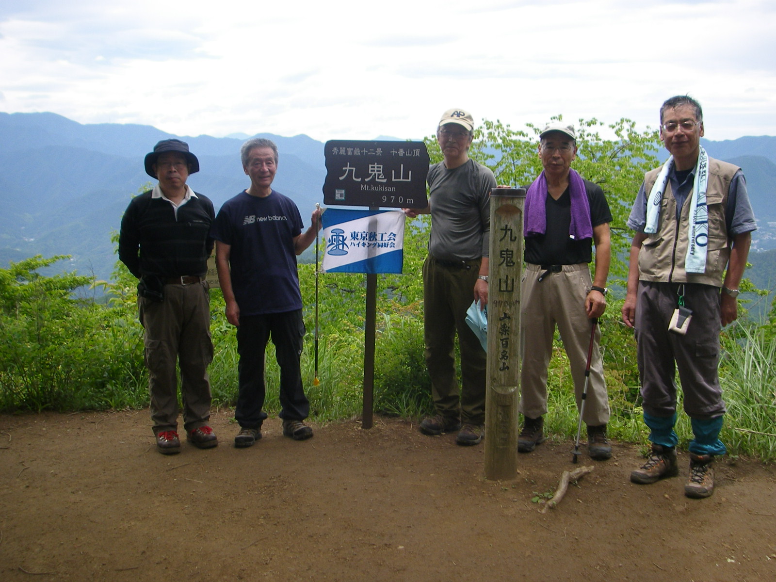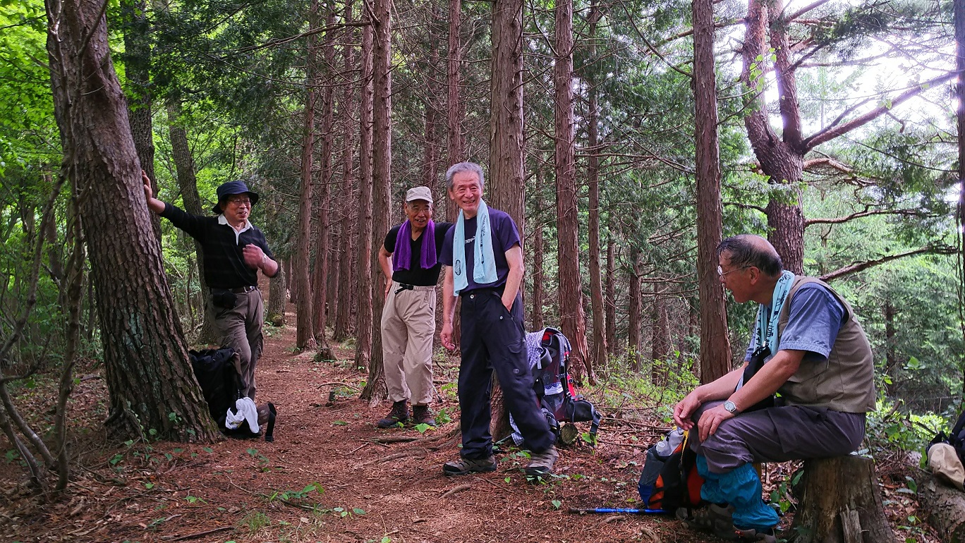 残り30分は結構きつい登りで12:30山頂に到着、早速たった1人いた男性に写真をお願いした後各自シートを広げ昼食タイム1時間ゆっくりと食事休憩を取り13時半下山開始頂上直下はかなりの急こう配で思いのほか時間を費やす、田野倉駅少し手前のコンビニで冷たい飲み物を調達し16時田野倉駅到着、電車は出たばかりで1時間待ちなのでタクシーを駅員に呼んでもらい大月まで行く、今回の天気は雲りであったが幸運にも富士山を望むことができラッキーな山行となった。