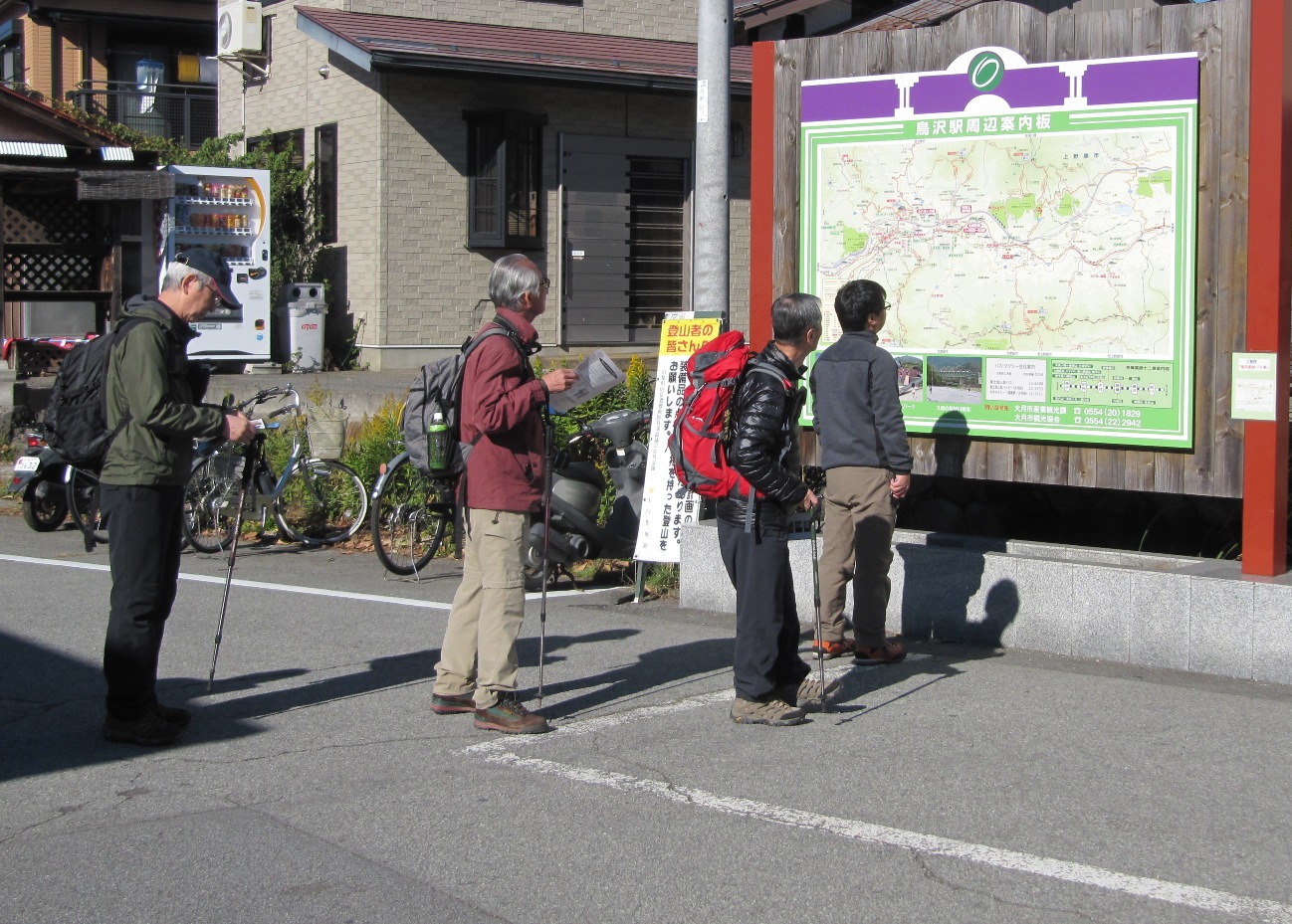中央本線鳥沢駅に10集合、参加者は、加藤幸夫(S36M)・佐藤勲(S40M)・市川正(S41E)・三浦勝(S43M)・奥山恍(S41K)の5人です。
