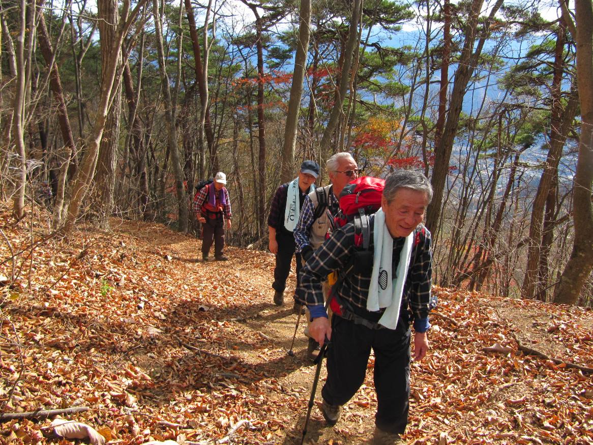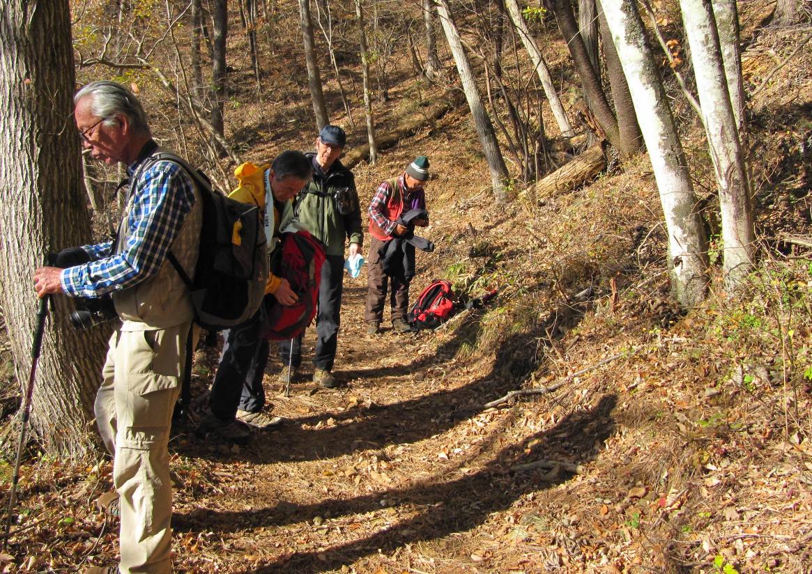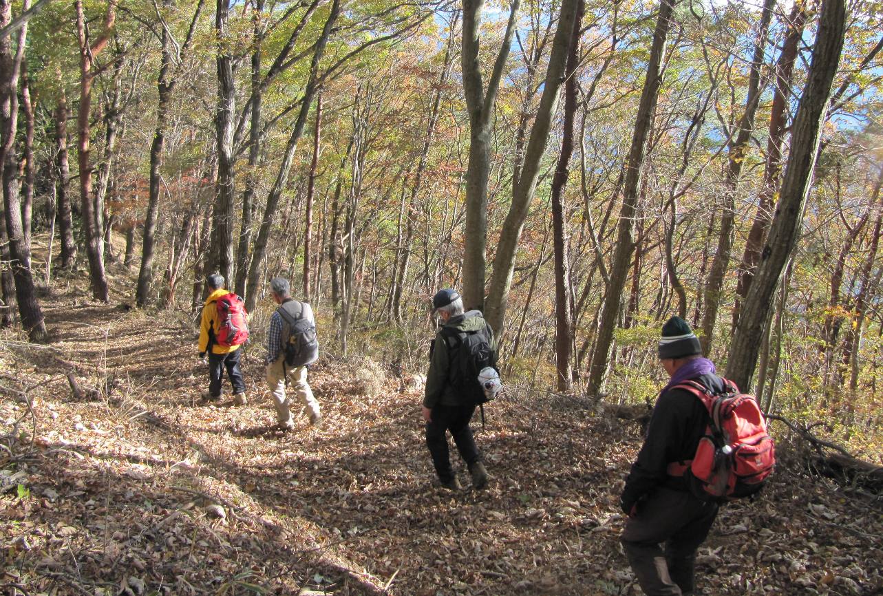 10時40分やっと登山口に到着、杉林の中の蛇行した道を進み徐々に高度を上げるとよく整備された尾根道に出る、あまり長くはないが急こう配を息を弾ませクリアし12時15分丸山山頂到着。すぐに証拠写真を撮り昼食13時15分下山開始、大野峠へ向かうがかなりの急こう配が延々と続き、こちら側から登ったら大変な目にあったねなどと話して何か得した気分に、15時15分芦ヶ久保駅に着いた。