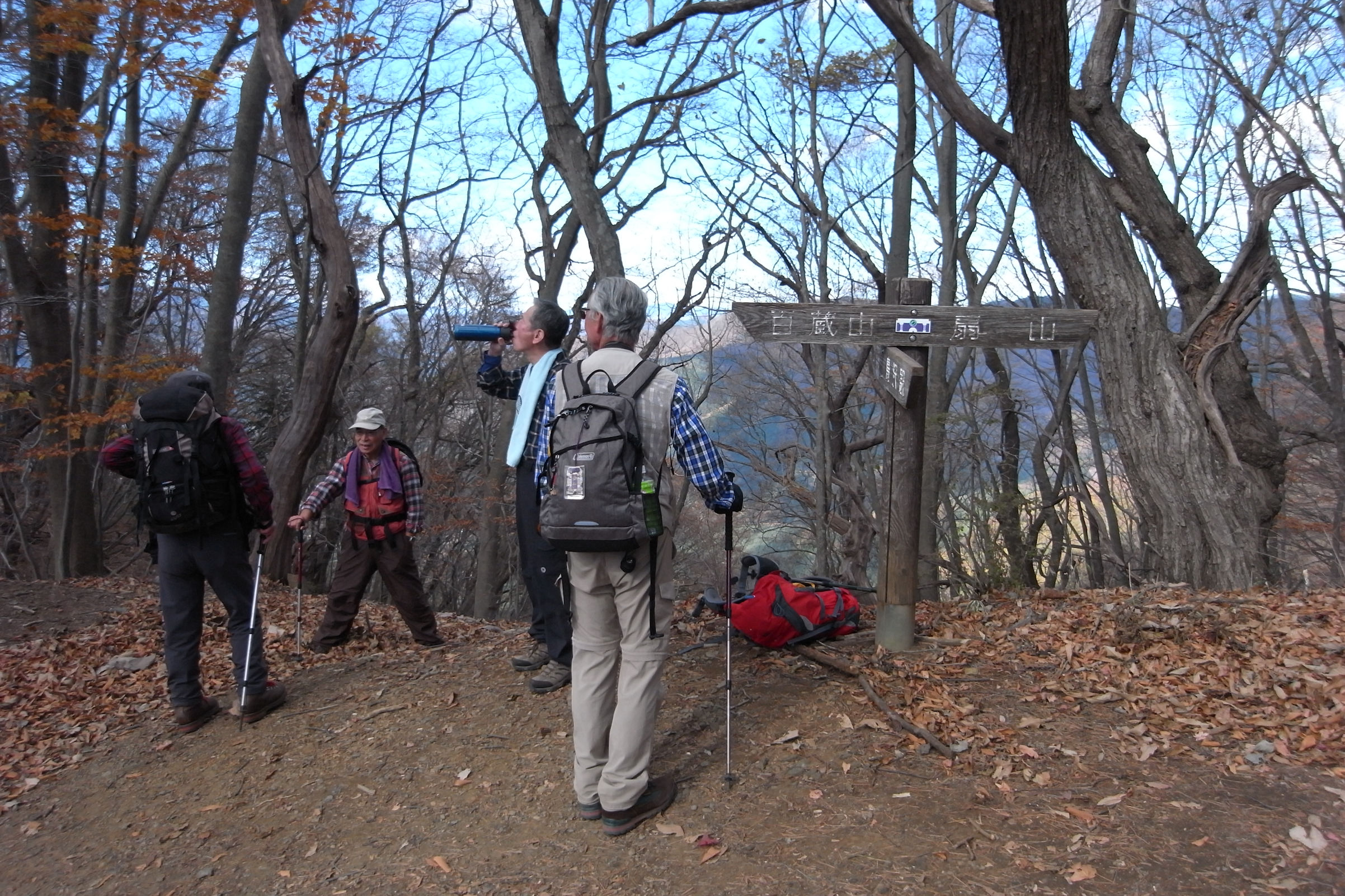 12時20分山頂到着後、証拠写真を撮り御嶽神社の軒下を借りて昼食後13時15分下山開始15時30分横瀬駅に着いた、今回も晴天に恵まれ楽しい山行であった。