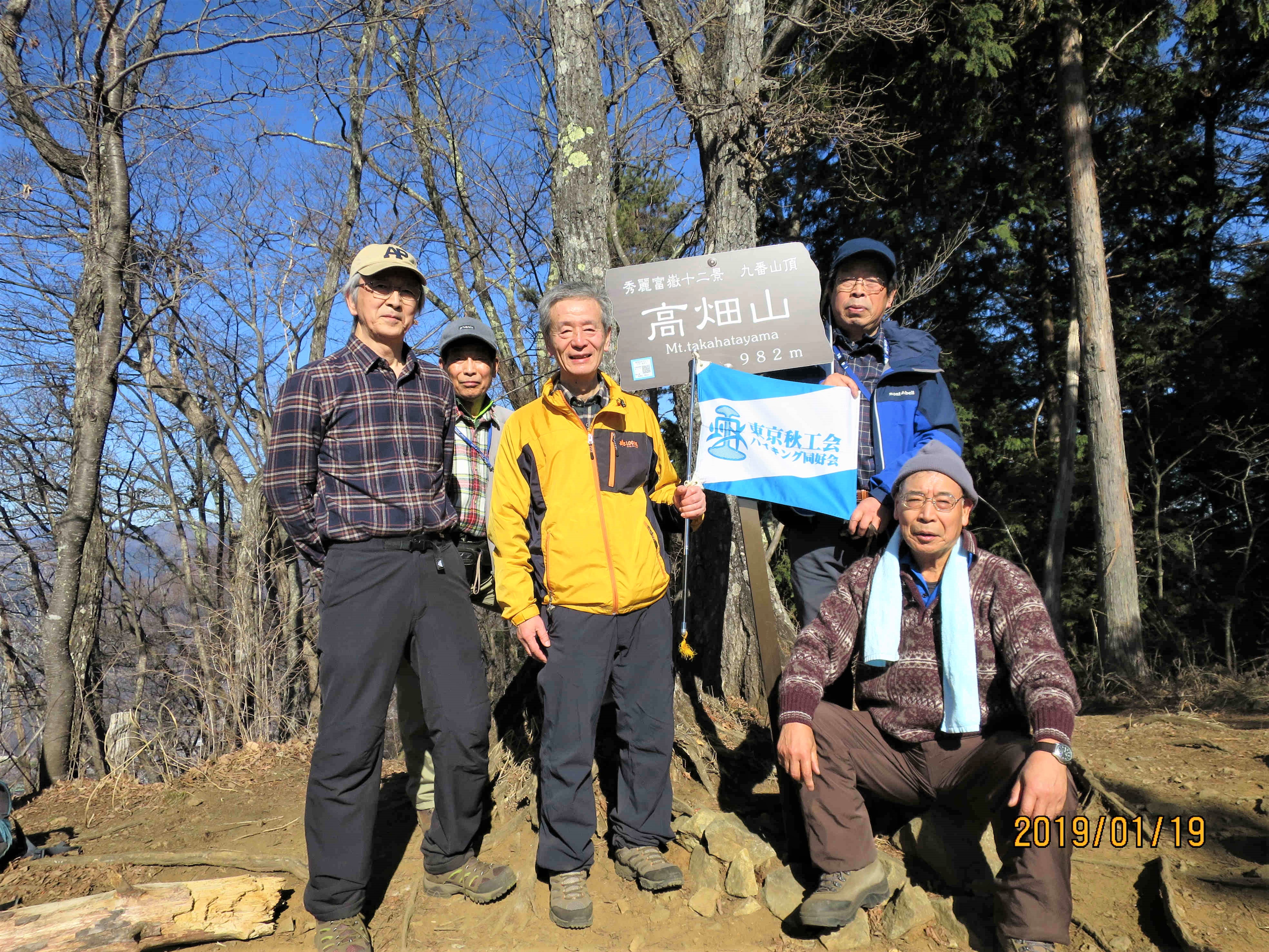 平成31年1月19日の新年山行は山梨県大月市富嶽12景の一座の高畑山に加藤幸夫(S36M)・佐藤勲(S40M)・三浦勝(S43M)・乳井豊昭(中央高校)・奥山恍(S41K)の5人で行きました。