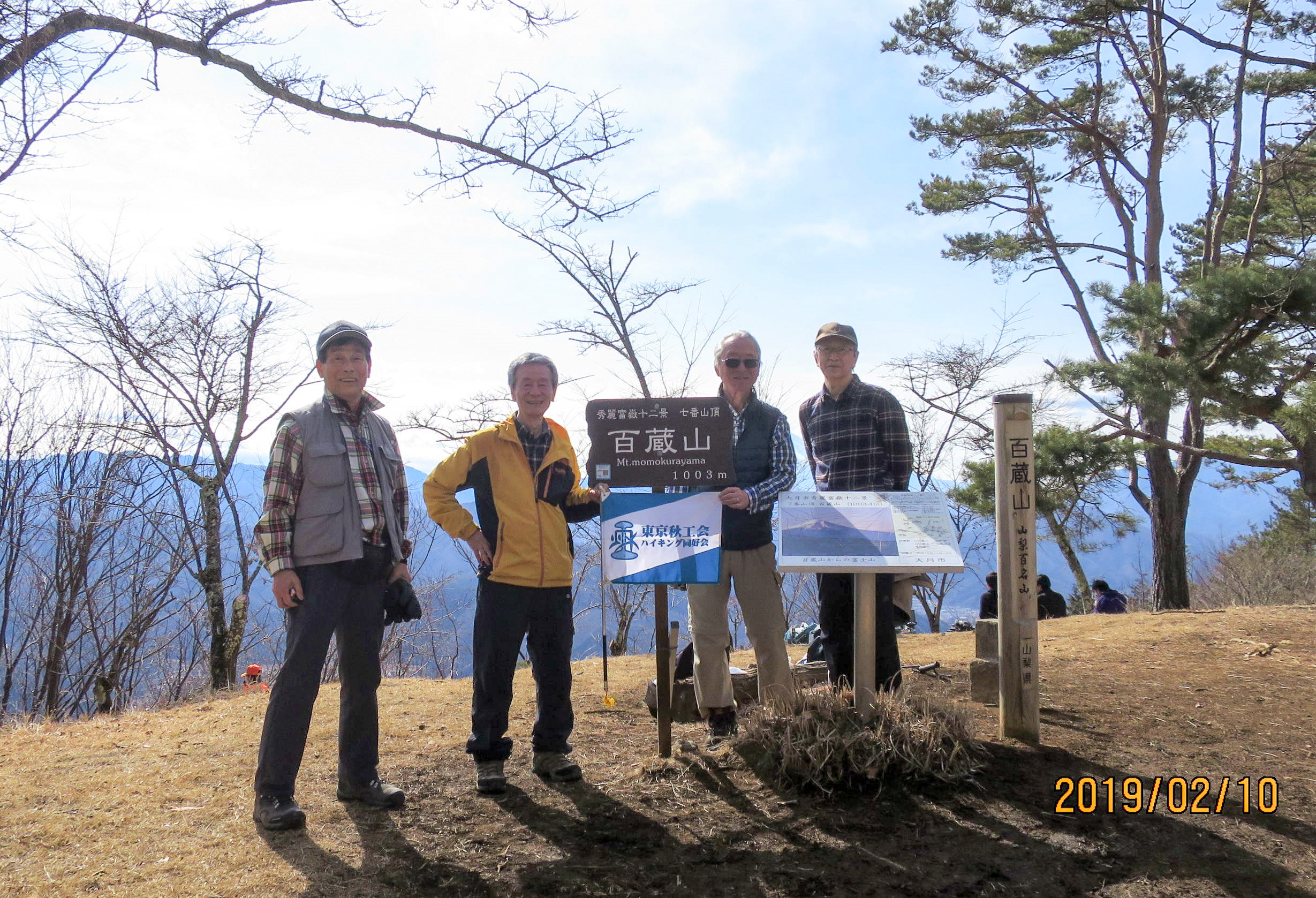 平成31年2月10日の山行は山梨県大月市富嶽12景の一座百蔵山に、市川正(S41E)・三浦勝(S43M)・乳井豊昭(中央高校)・奥山恍(S41K)の4人で行きました。