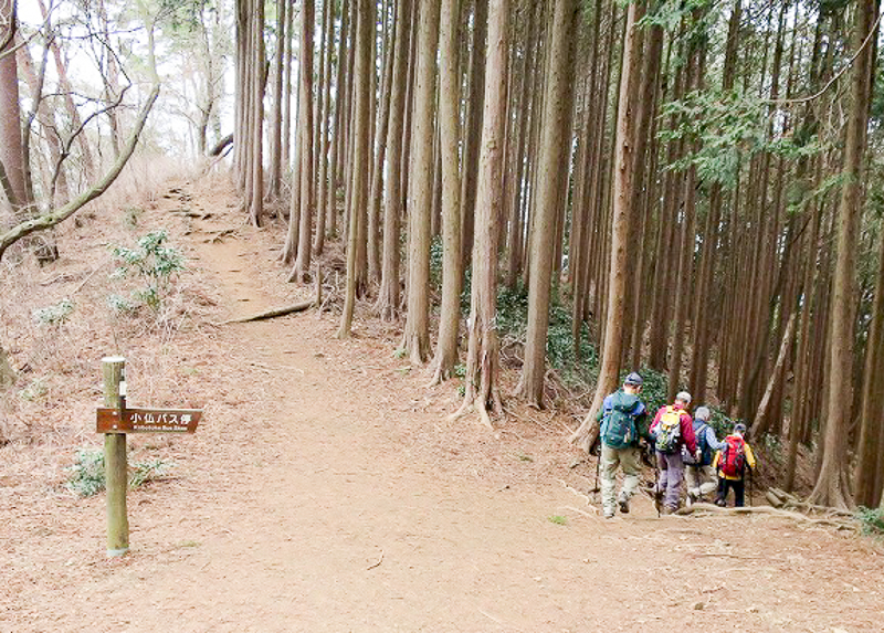 30分のち底沢峠・堂所山(登らずまきみちを通る)を経て13:40分景信山到着、結構なハイペースであったため皆一様に「あー疲れた」。急な下り坂を50分で小仏バス停にたどり着いた。丁度「高尾梅里梅まつり」の最中で途中のバス乗り場は大勢の人で賑わっていたが何台もの臨時バスが運行していた。