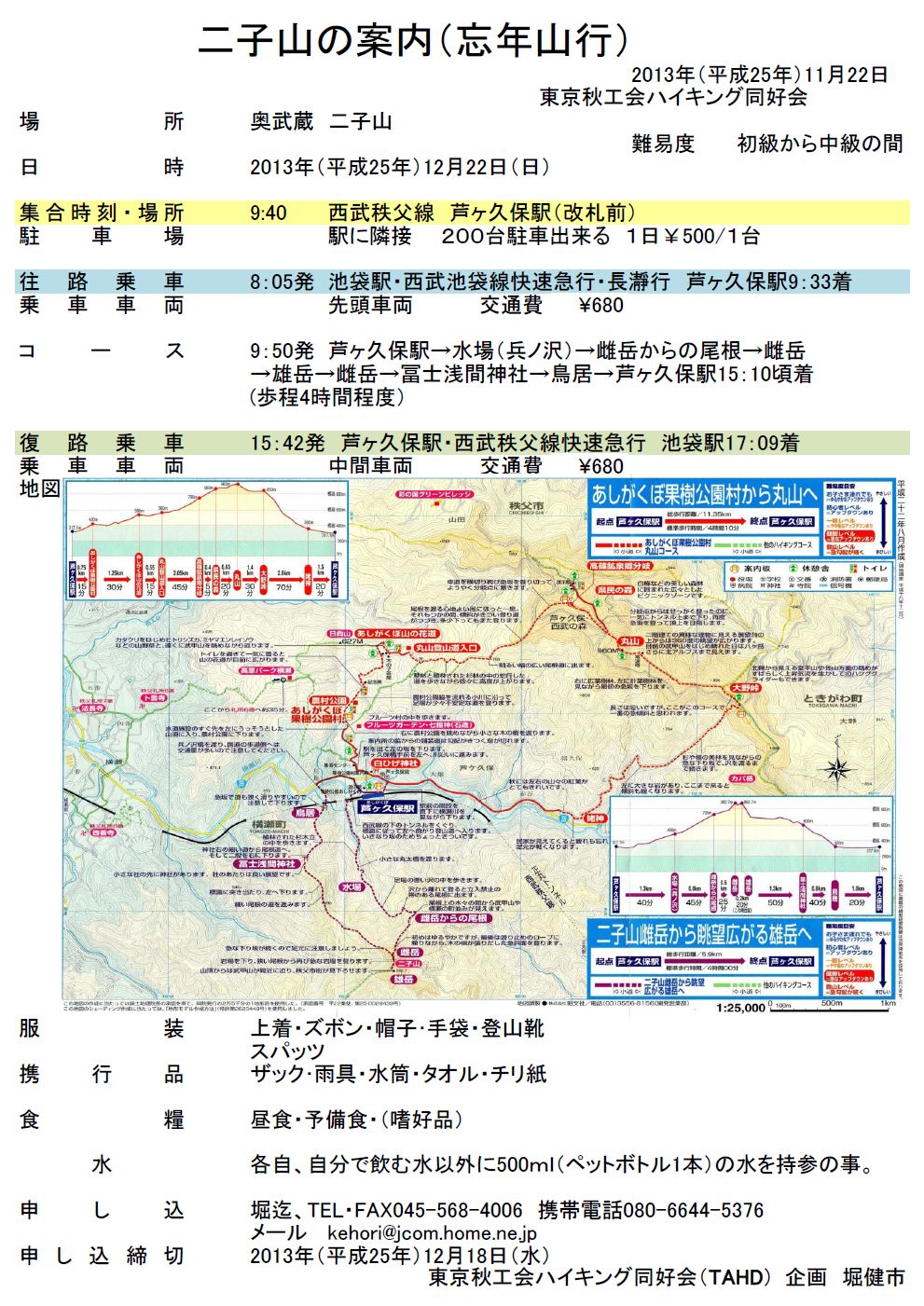 平成25年の忘年山行は、12月22日(日)埼玉県秩父の二子山に登ってきました。
