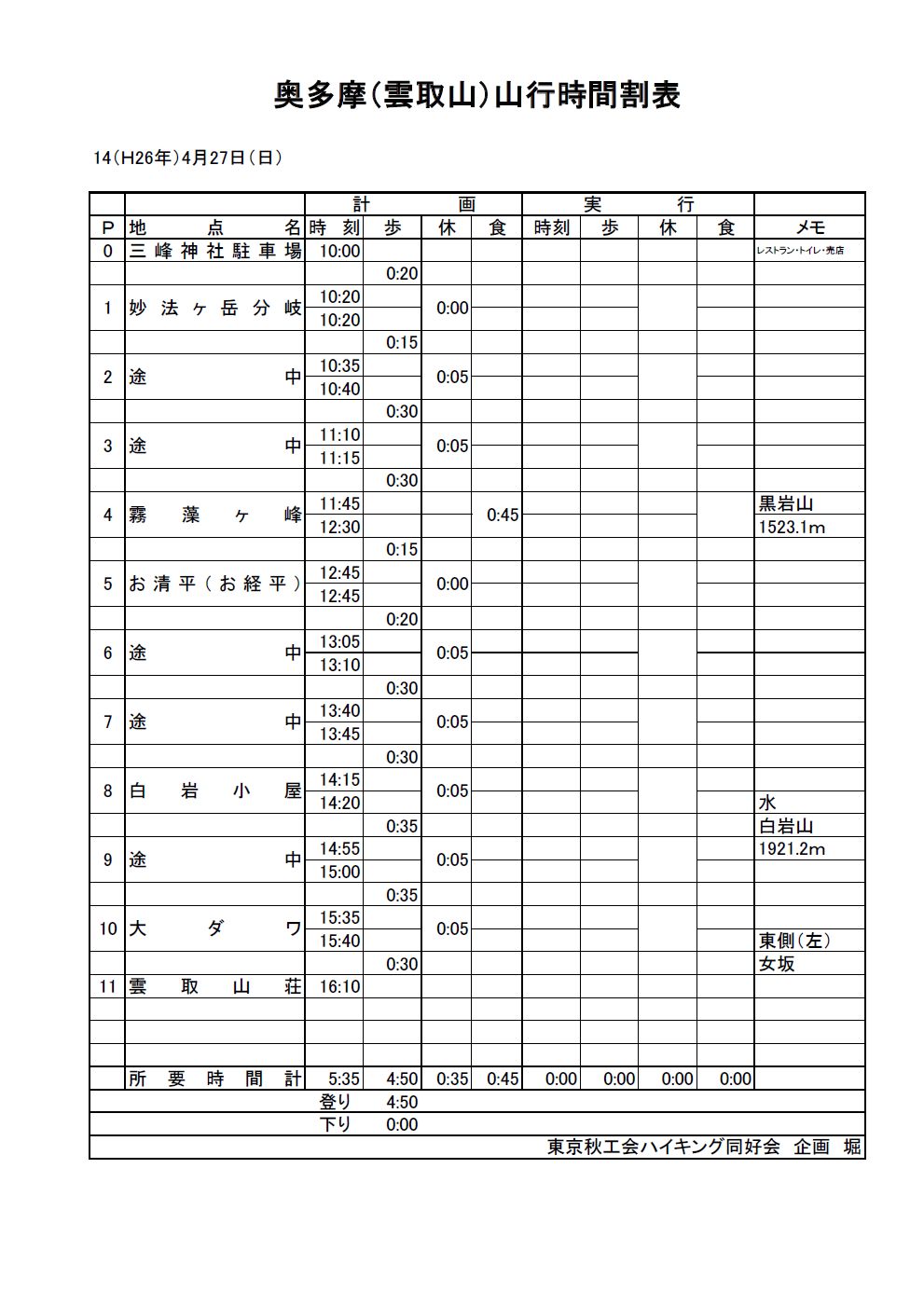なります。やはり安全で楽しい山行にしたいので、皆様よろしく、お願い致します。