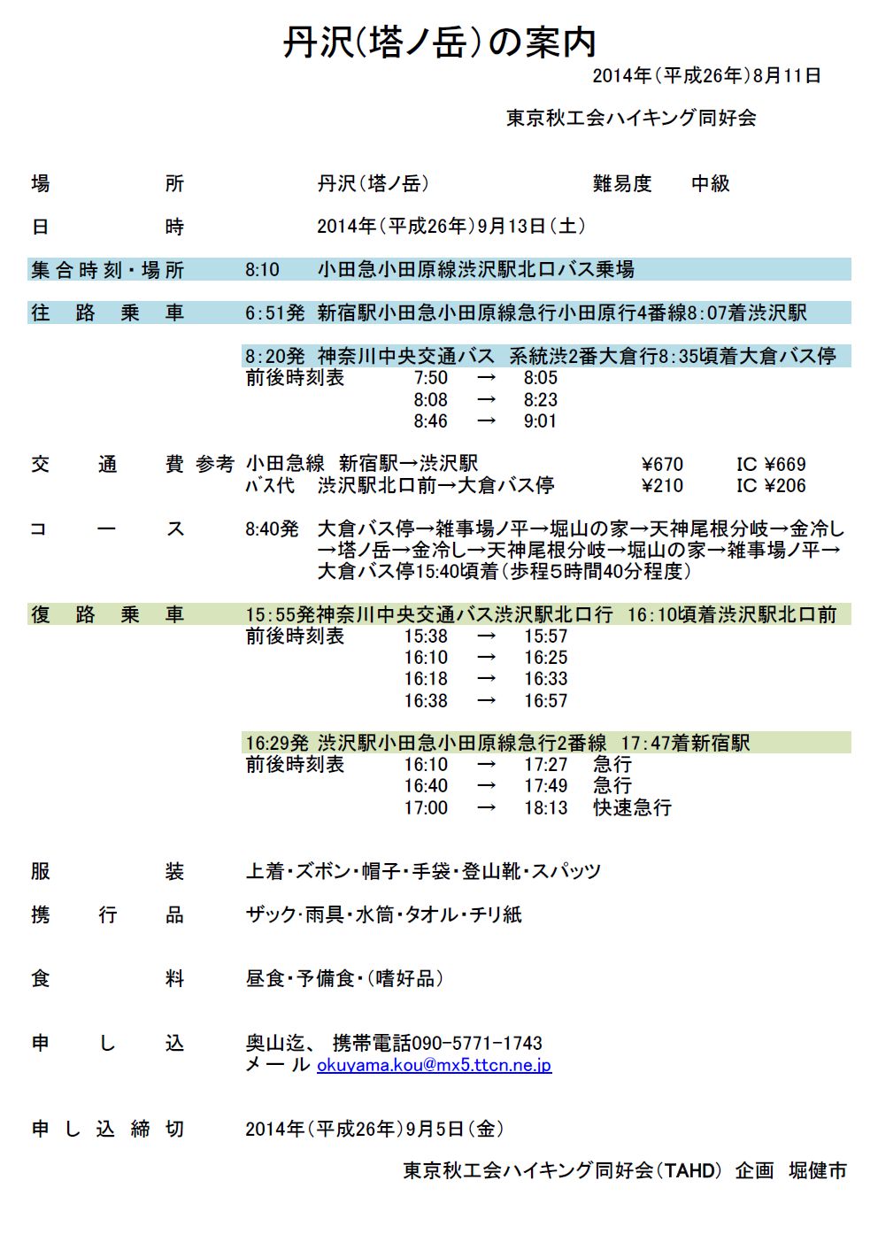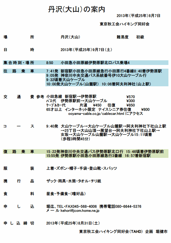 9月13日(土)丹沢・塔ノ岳のご案内です。