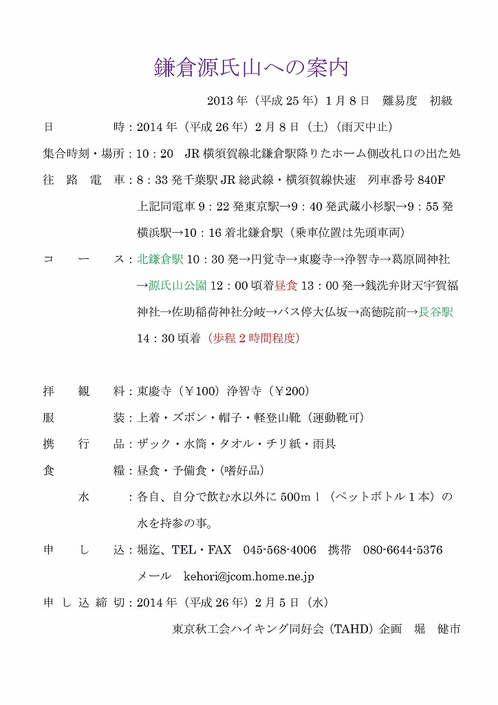 2月8日(土)の鎌倉源氏山散策は、暴風雪により中止に致しました。