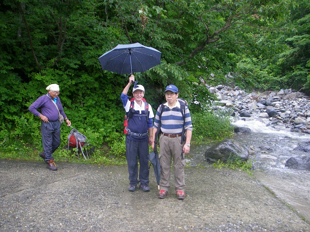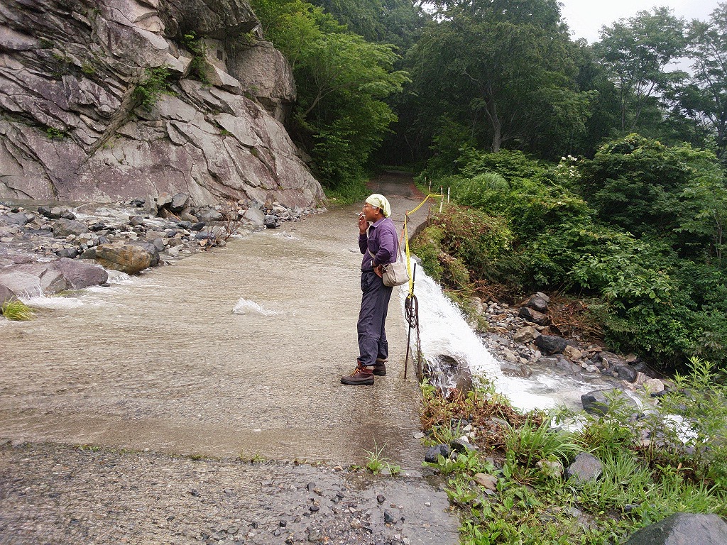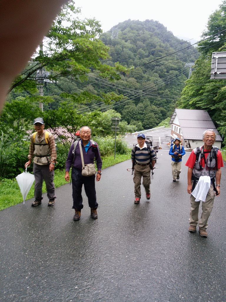 7月の山行は、そんな状況下でも前日泊の宿の予約をしてあったので中止できず、加藤幸夫さん・佐藤勲さん・市川正さん・田口芳美さん・奥山恍の5人が温泉宿松乃井に集合した。