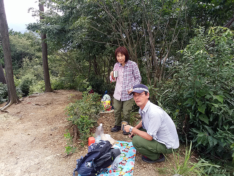 途中2度の休憩をはさみ、鎖場・梯子場を数か所楽しみ12時20分山頂にたどり着いた。 360度の絶景を楽しみ写真を撮った後、9合目までおり昼食とした。