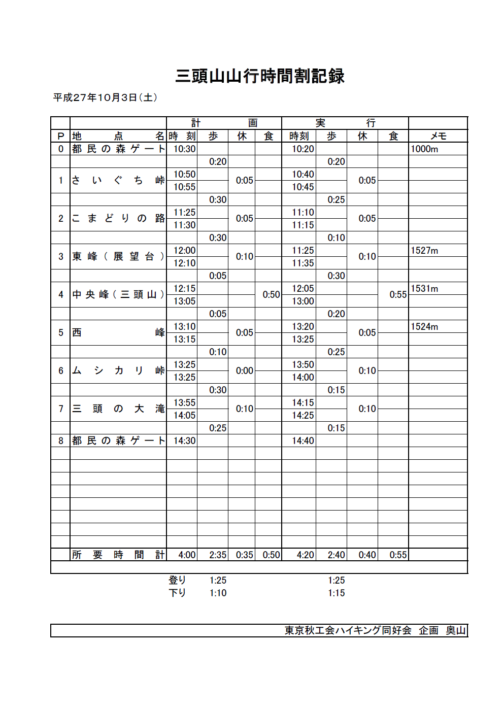 平成27年10月3日素晴らしい秋晴れの山行となりました。