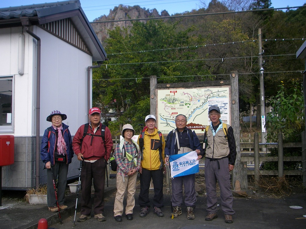 JR吾妻線郷原駅に10:15分集合した。小さな無人駅であるが登山客が他にも5・6名見受けられ記念写真のシャッターをおねがいする。