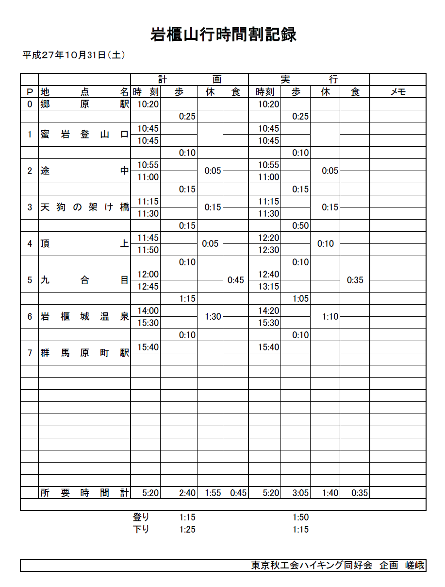 岩櫃山記録