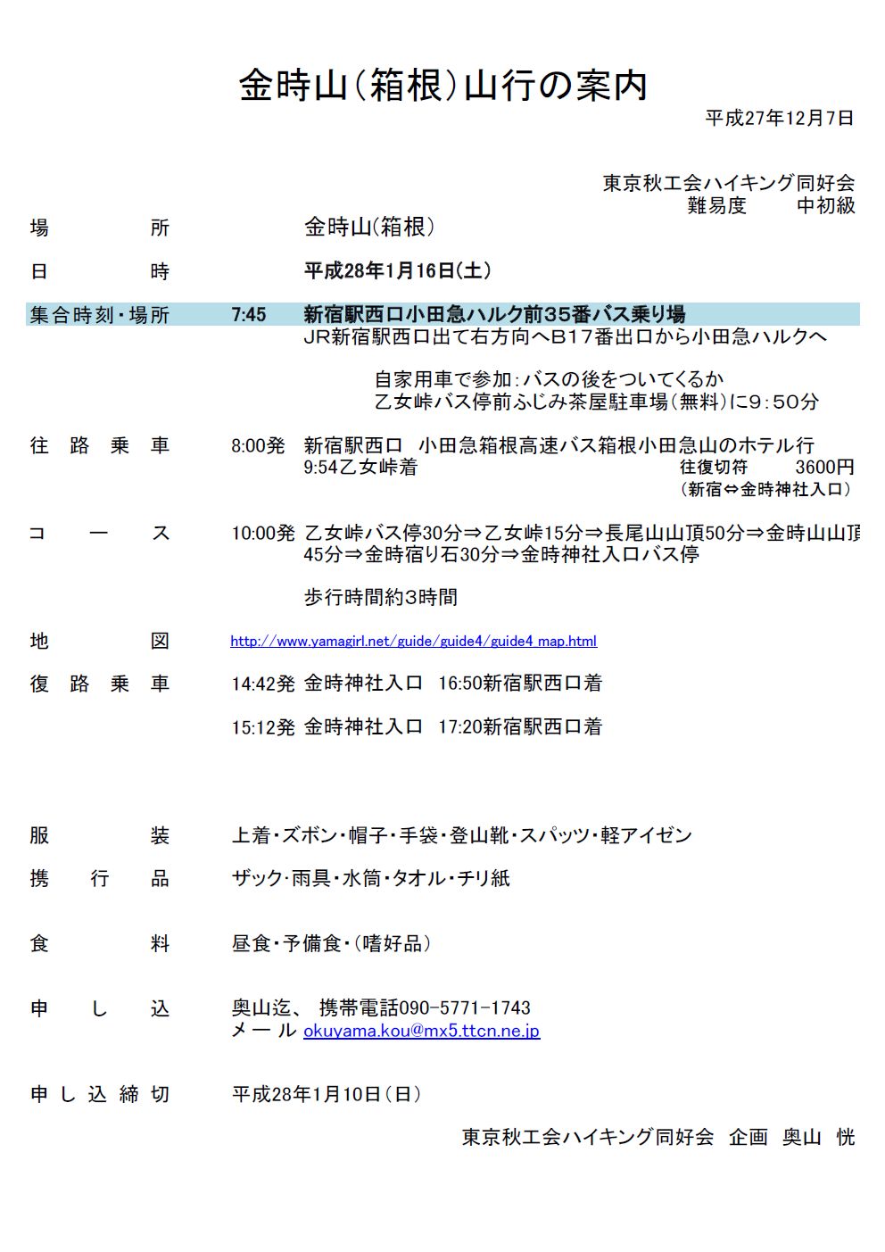 参加者は、加藤幸夫(S36M)・佐藤勲(S40M)・嵯峨良平(S43E)夫妻・田口芳美(S43E)・奥山恍(41K)の6名、8時48分JR武蔵五日市に到着駅前のバス乗り場はすでに登山客で長蛇の列、増便のおかげでどうにか全員座ることができた。
