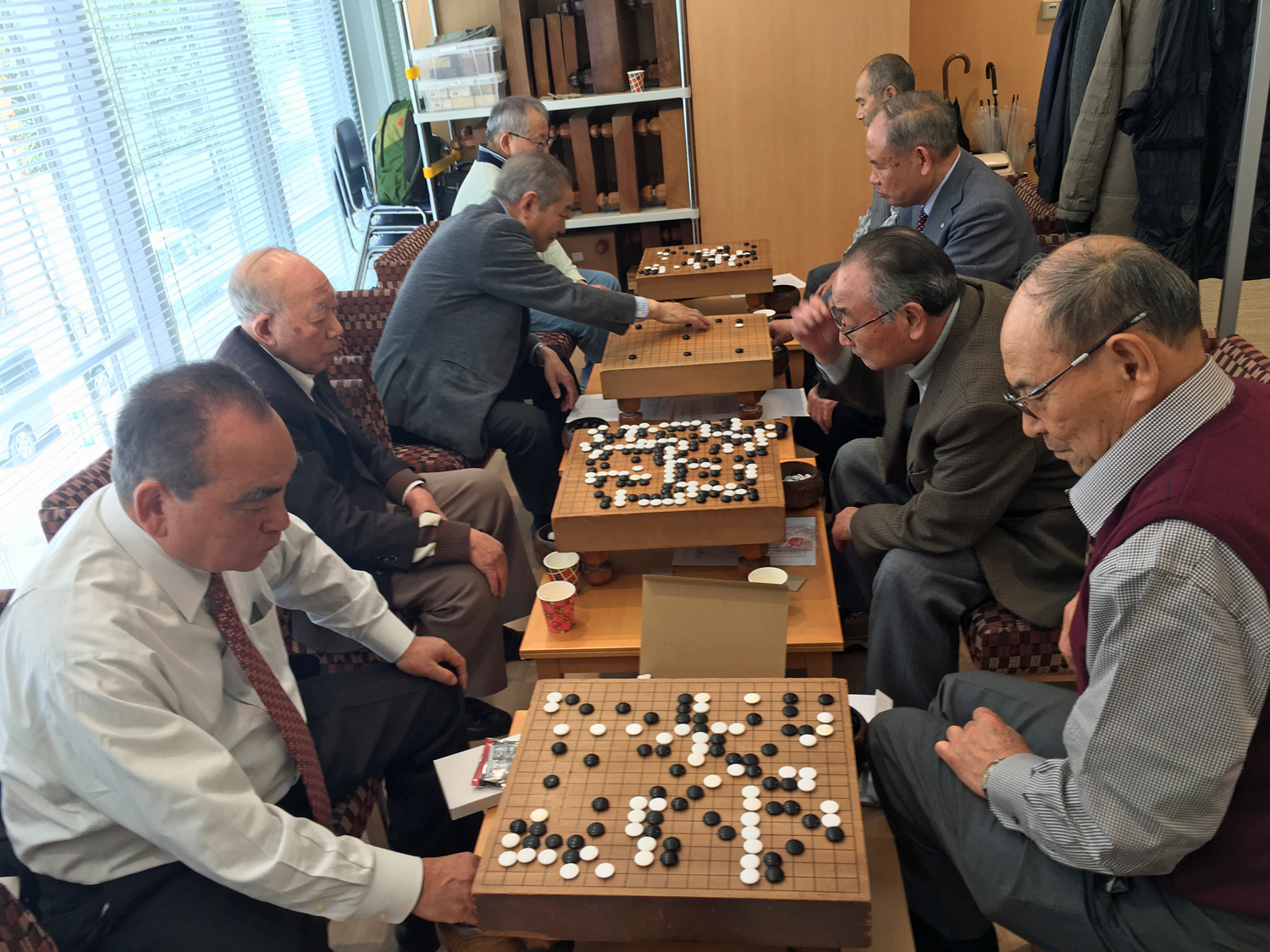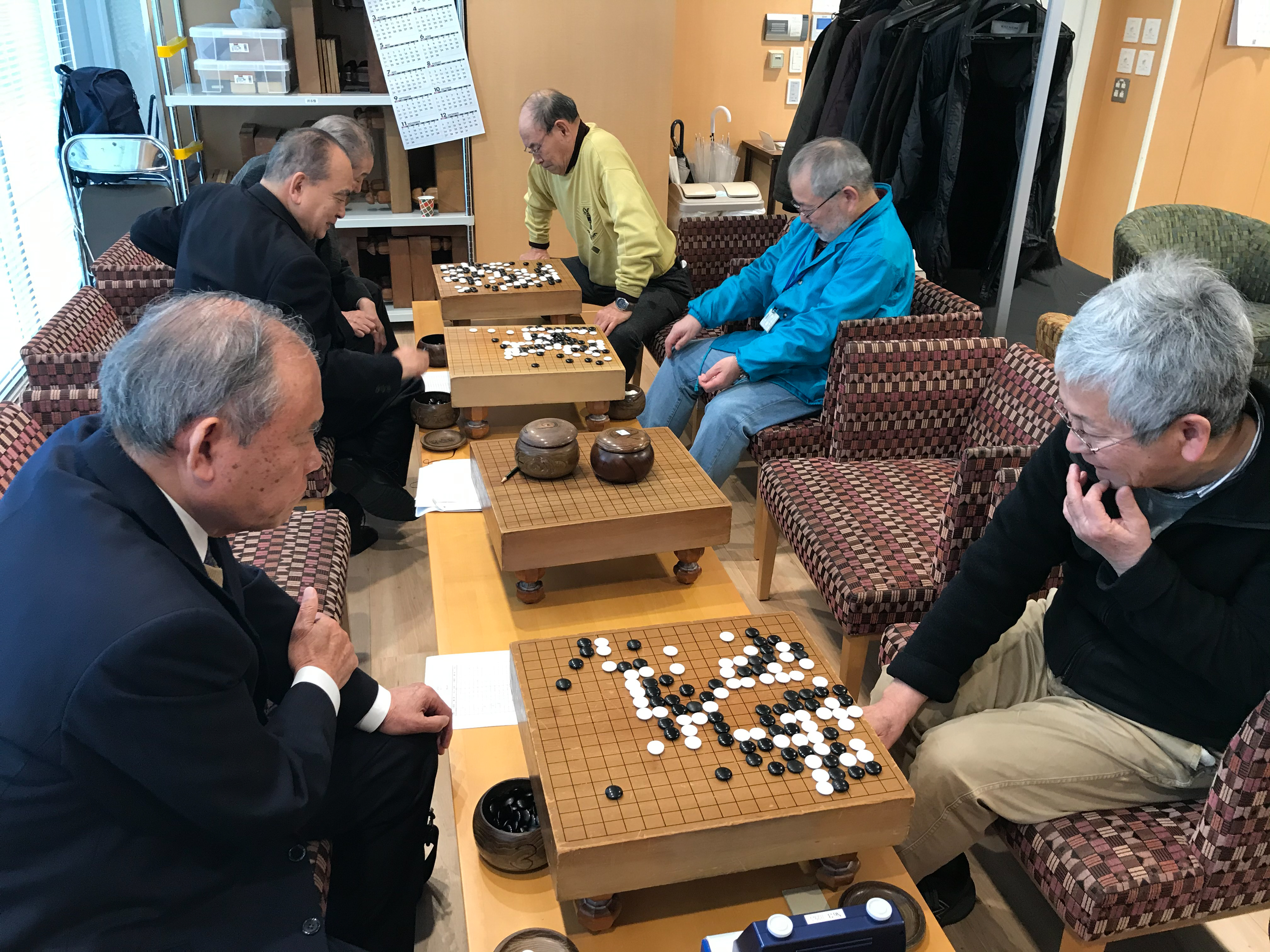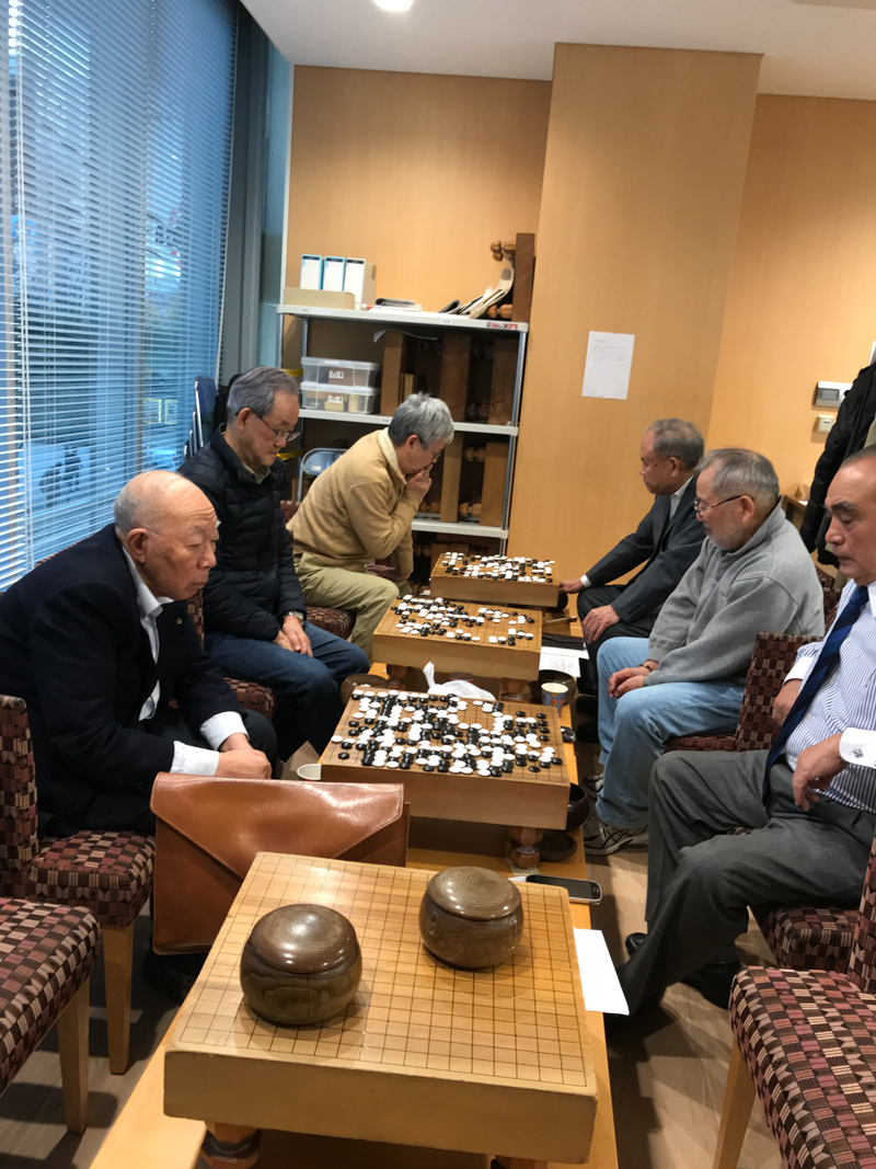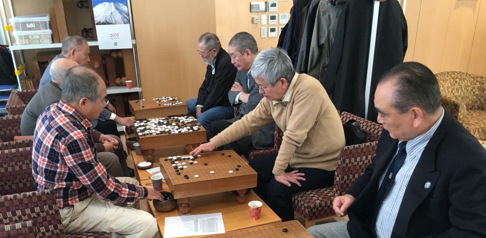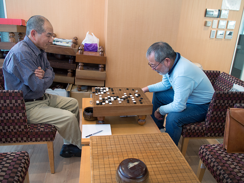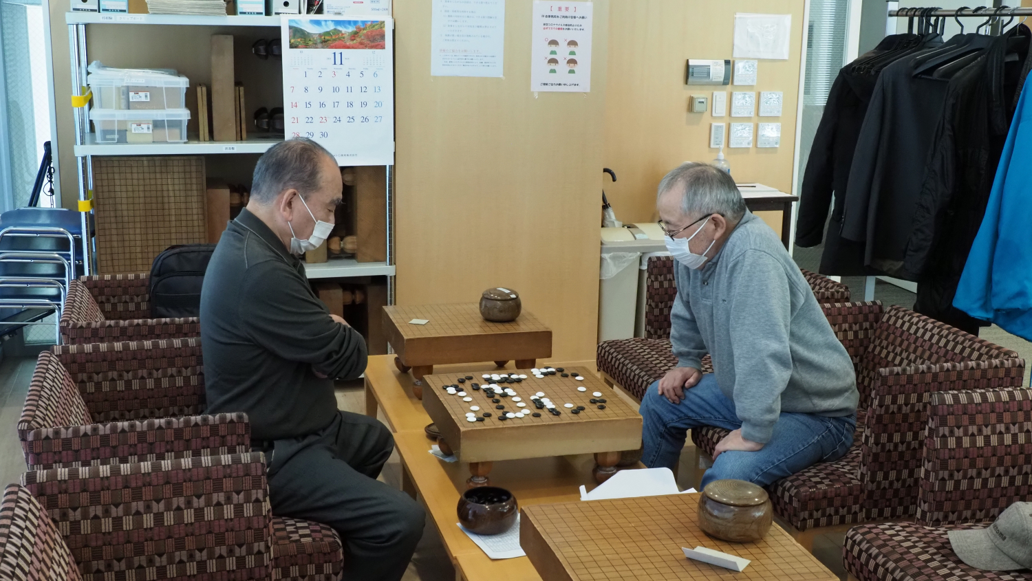手空きの一人は対局を見て、対局者もじっくりと落ち着いた碁を打てました。