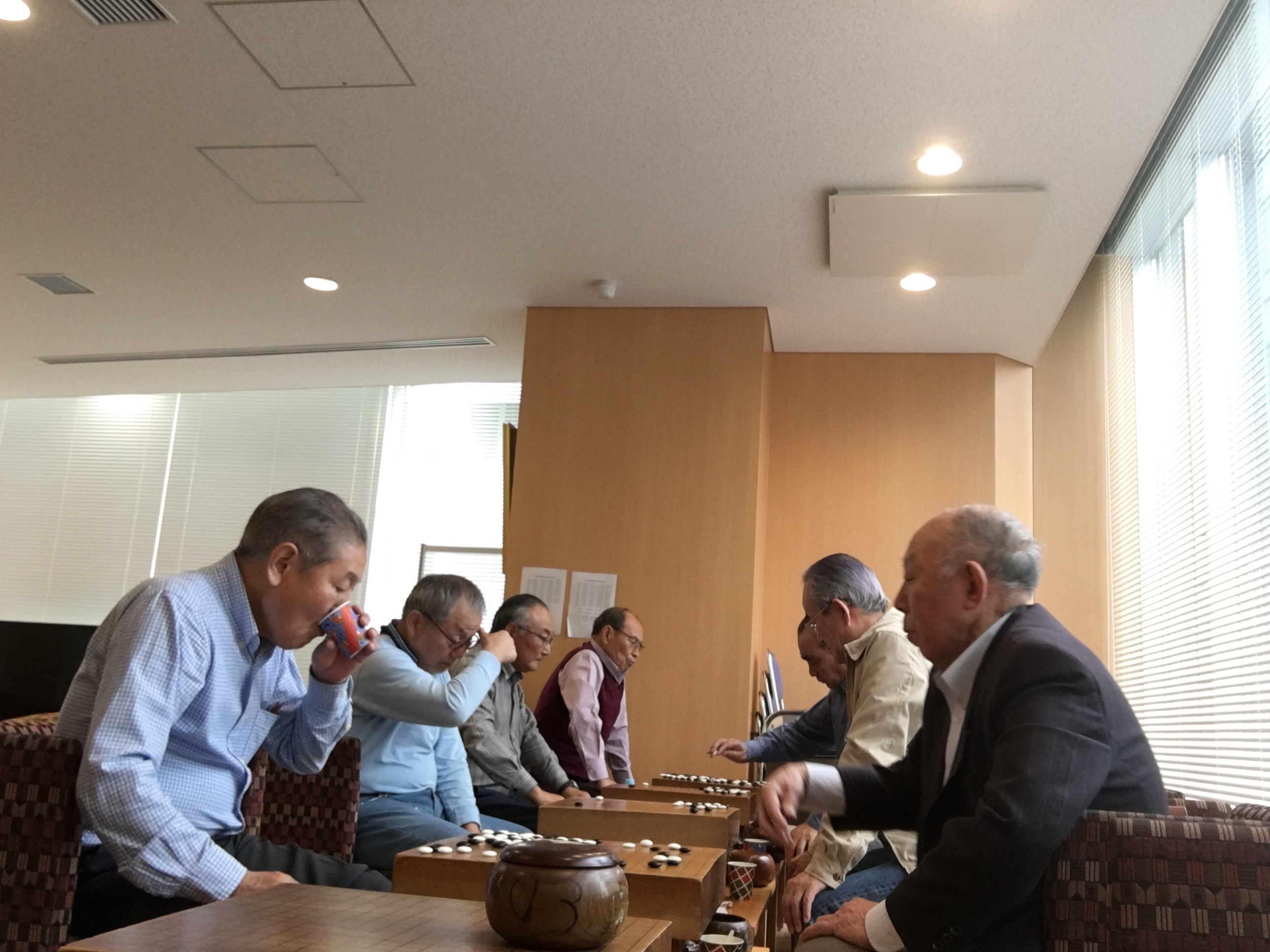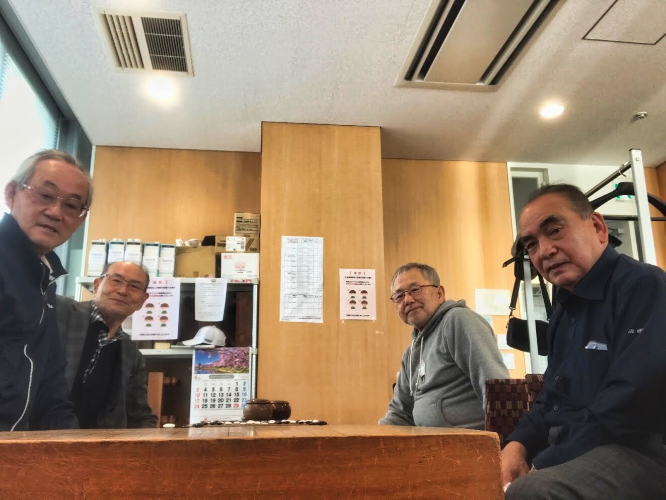 参加者は、大塚廉造(S32K)さん、後藤重久さん(S38E)、赤川(S41E) の3名でした。この日はゴルフ同好会の例会と重なったため参加者が少なくなりました。久しぶりの碁盤を挟んだ対面の対局でした。
