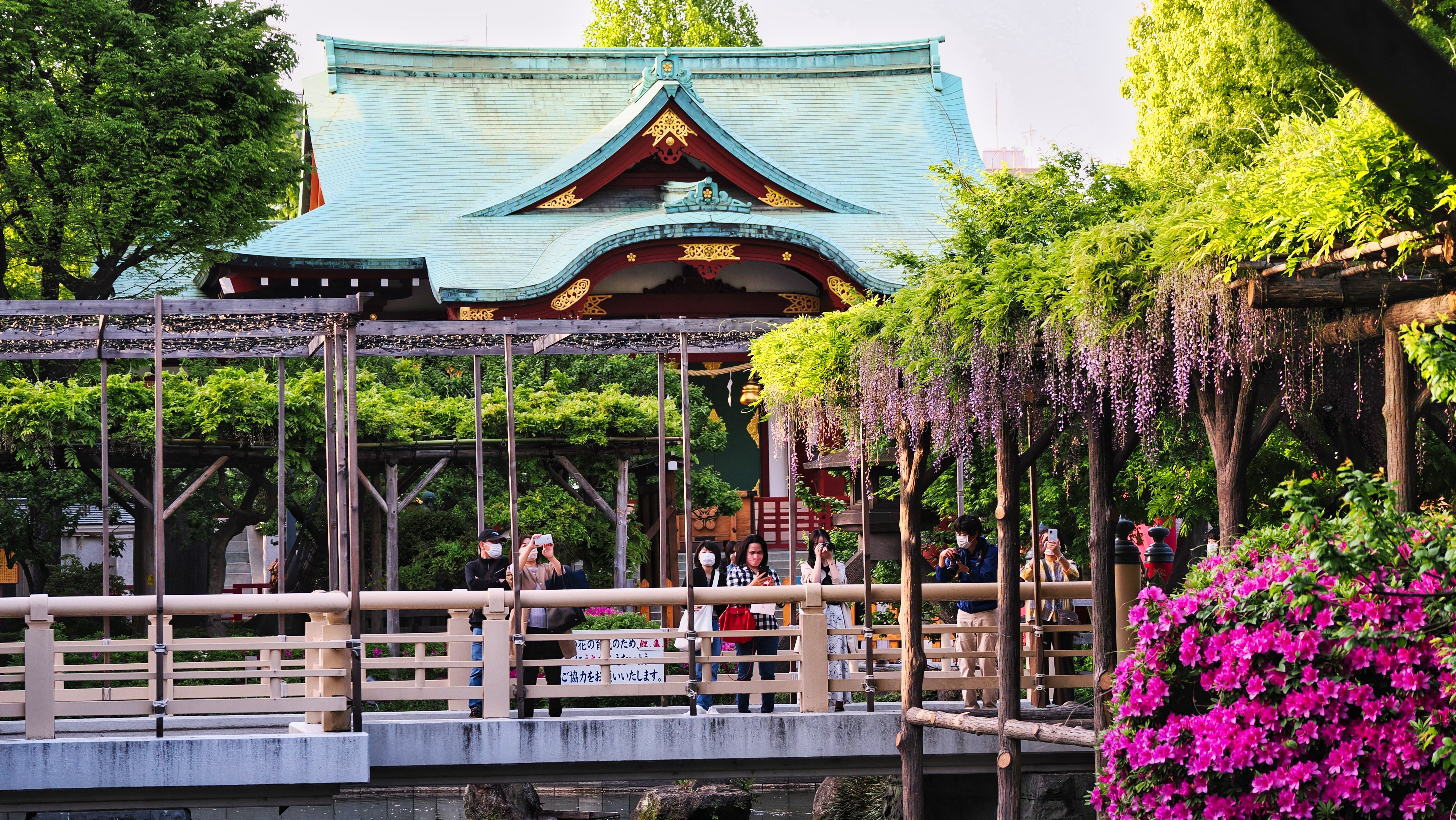 帰りに足を伸ばして亀戸天神の藤まつりを覗いてきました。フジはほとんど終わってました。