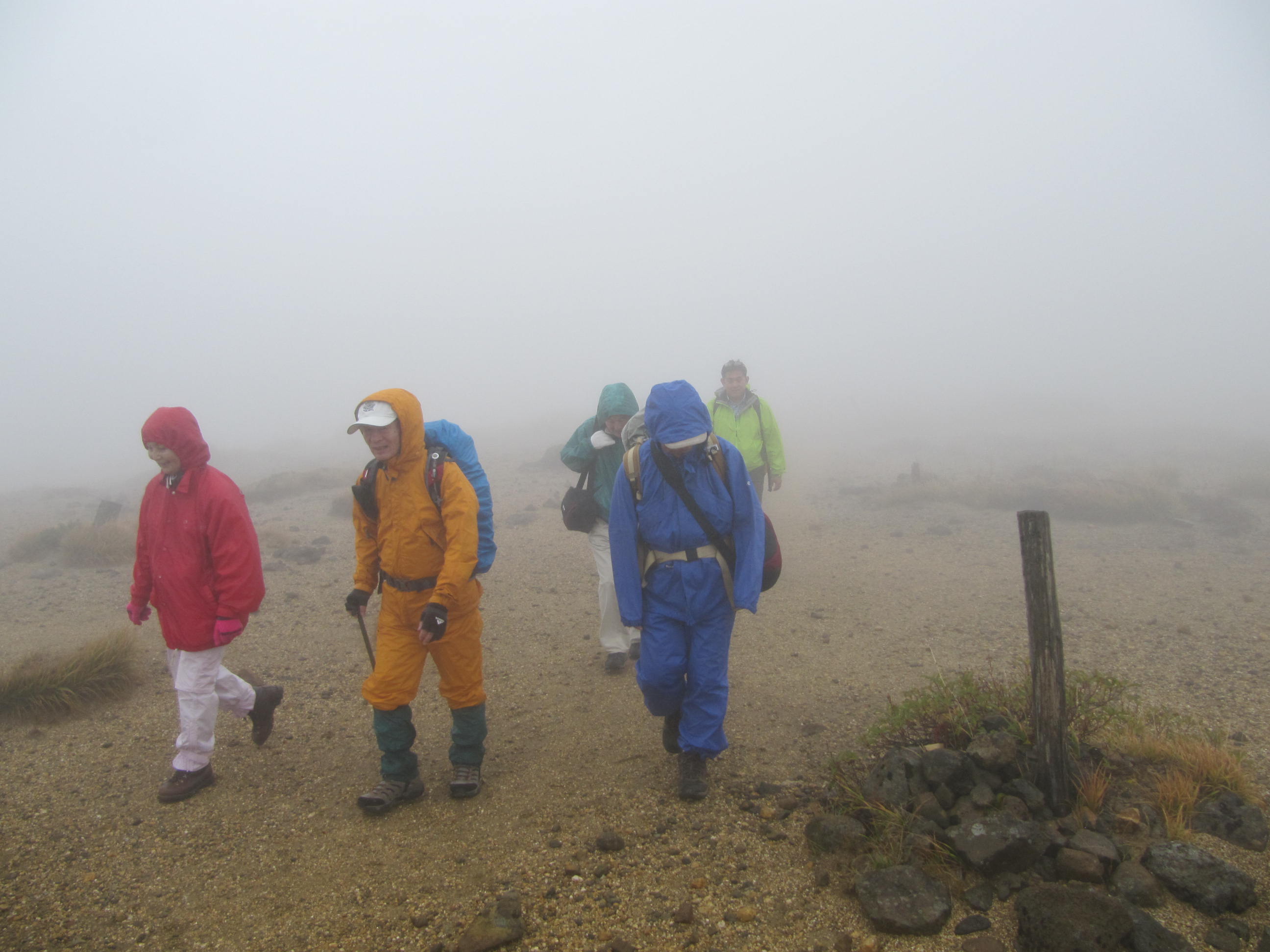 山に不慣れな諸氏、天候の悪いなかを本当に頑張りました、お疲れ様でした。報告文 加藤幸夫(昭36)