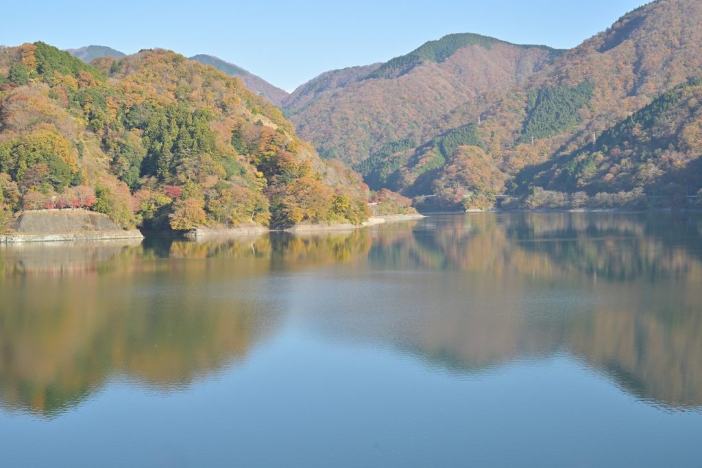 丹沢湖周辺は「もみじ」が少なく逆光で富士山よく撮れなかった。三保の家は、湖底に水没した世附地区にあった120年前の民家を再現してます。