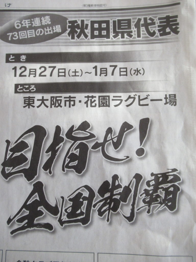 秋工同窓生の皆様 秋工ラクビー部の応援よろしくお願いいたします。