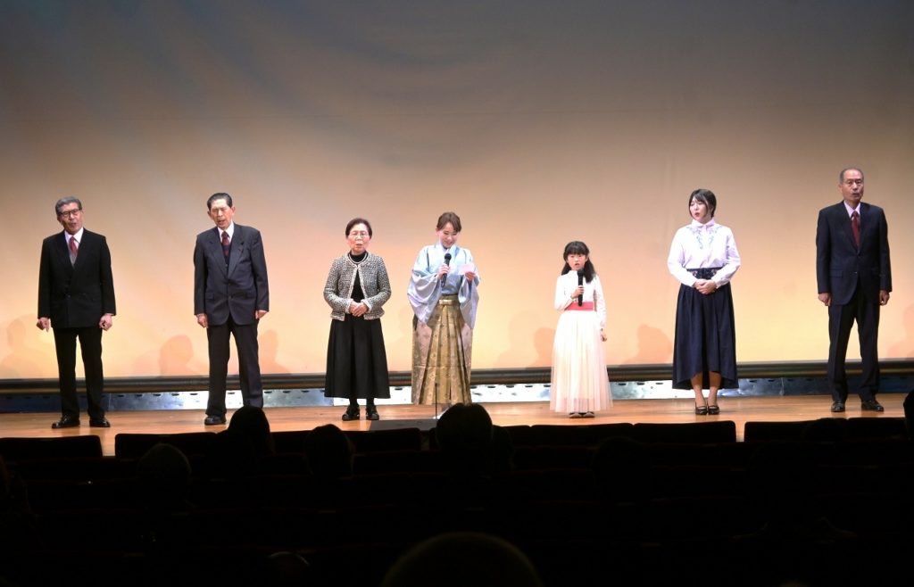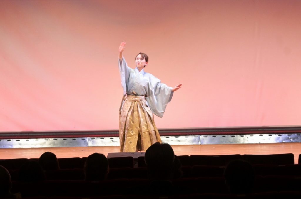 第一部12:00~14:05 ①青少年のための文化体験 ②歌謡「狭山いろいろあるけれど」➂新舞踊 ➃放送劇「セロ弾きのゴーシュ」⑤吟詠 ➅日本舞踊を鑑賞した後に狭山市茶道連盟の茶席において、美味しいお菓子と狭山抹茶でなごみの一服をいただきました。