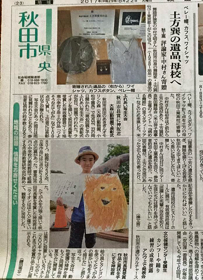 「 土方巽の遺品、母校(秋工高)へ 評論家中村文昭先生寄贈 」を紹介させていただきます。