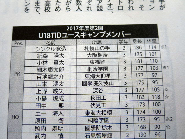 「U18 TIDユースキャンプ」は、2019年に日本で開催される「ラグビーワールドカップ2019」(RWC 2019)につながる将来有望な選手の発掘を進める日本ラグビーフットボール協会が、高校生世代(16-18歳)の人材発掘と育成のために行っている取り組みです。「U18 TIDユースキャンプ」参加選手は高校日本代表候補選手として来年3月に編成される高校日本代表の選考対象となります。 (日本ラクビー協会)