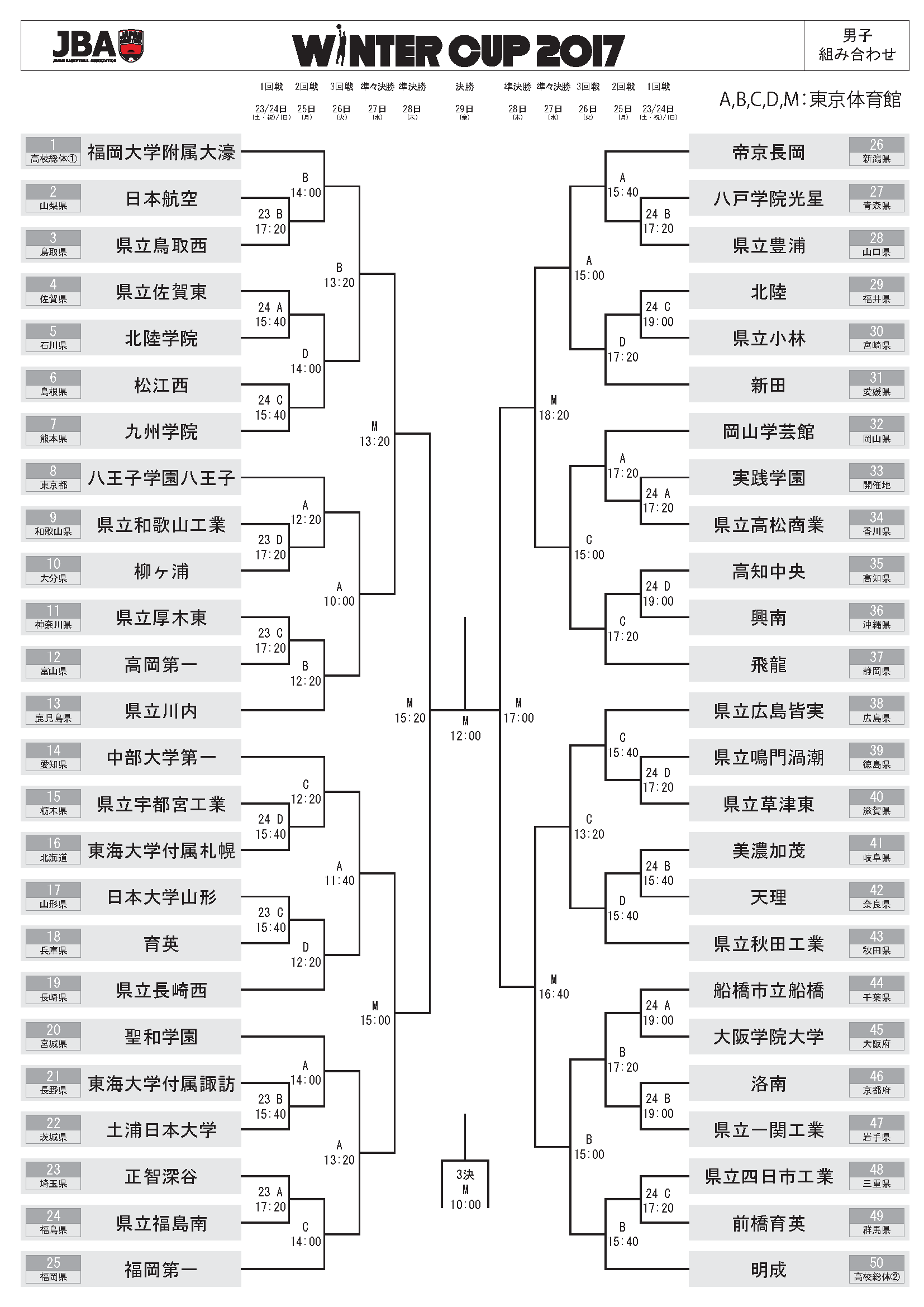 バスケットボールのウインターカップ2017第70回全国高校選手権大会(12月23~29日・東京体育館)の組み合わせが16日、決まった。