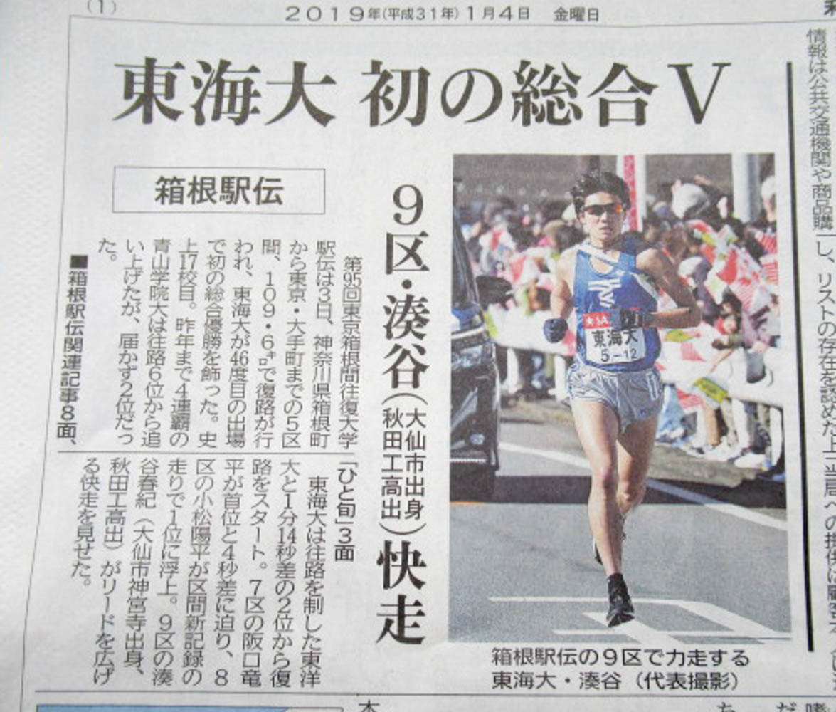 〇秋工出・湊谷、9区快走! 箱根駅伝、東海大が初V: