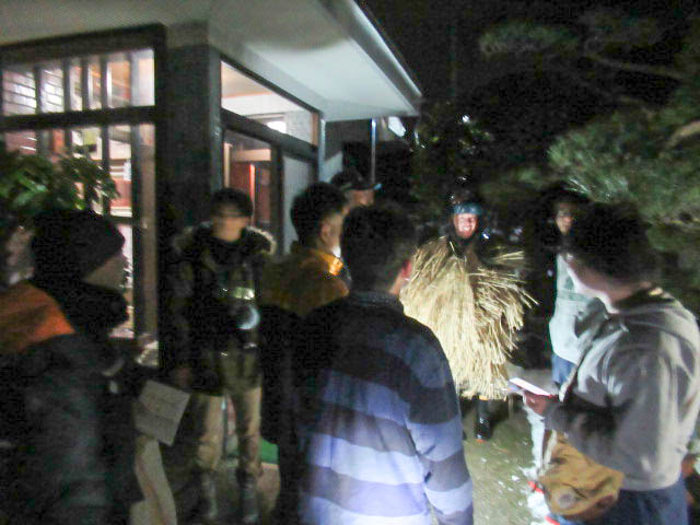 行事本番の31日午後4時に地区会館に集合、約1時間ナマハゲの心得伝授後、5時から出発して、約30軒の家々を回った。