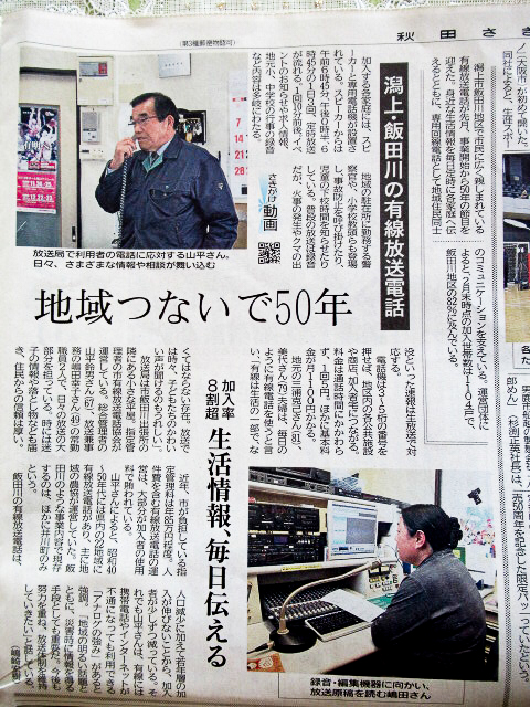 「 潟上市飯田川の有線放送電話、生活情報伝え50年(山平鈴男 秋工出)」を紹介させていただきます。