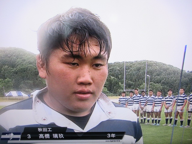 秋田工業は前半11分、反則で与えたペナルティーキックを秋田中央に決められ先制されますが、前半終了間際に高橋璃玖選手がトライを決めて逆転しました。